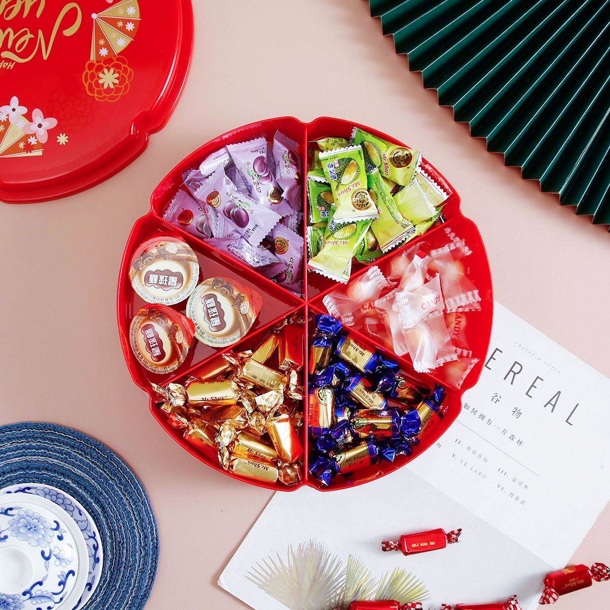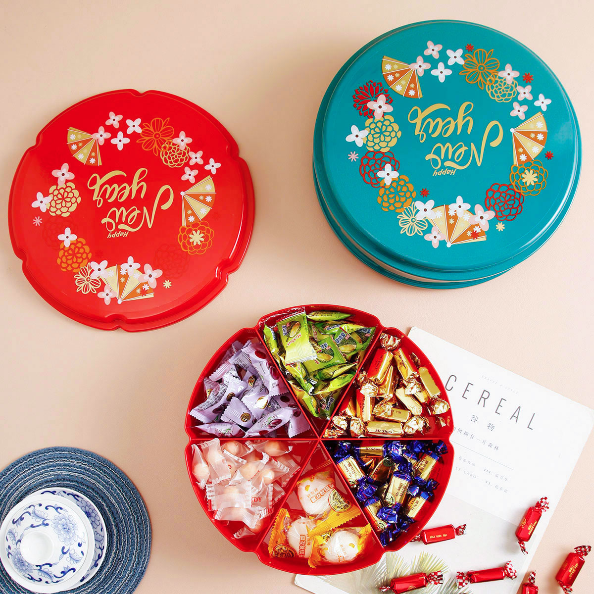 單層/雙層圓型/花型旋轉(zhuǎn)糖果盒  紅色/綠色