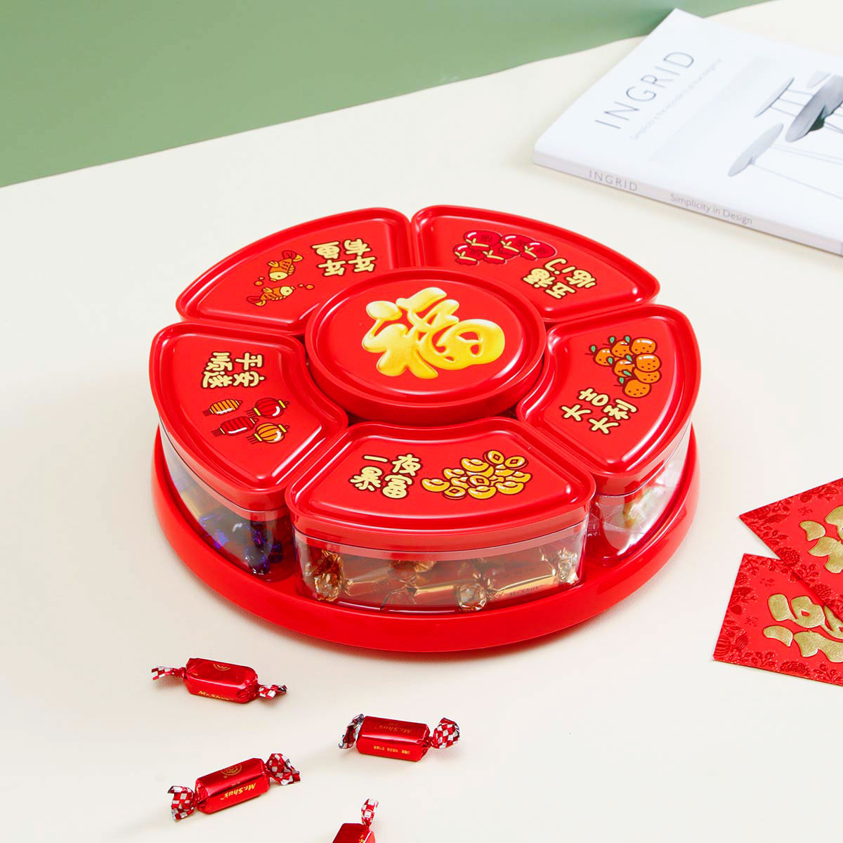 財神聚福旋轉(zhuǎn)糖果盒