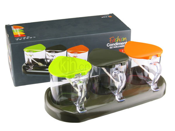 - 本產(chǎn)品采用食品級(jí)材料制作,安全、環(huán)保、無(wú)毒。套裝盒底部固定式底座設(shè)計(jì),有效固定調(diào)味盒之余,整理方便,更實(shí)用。