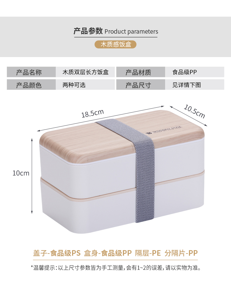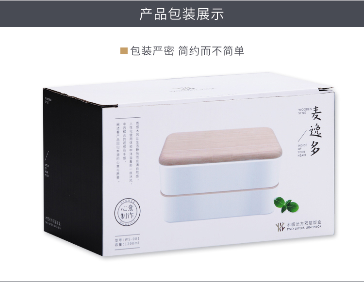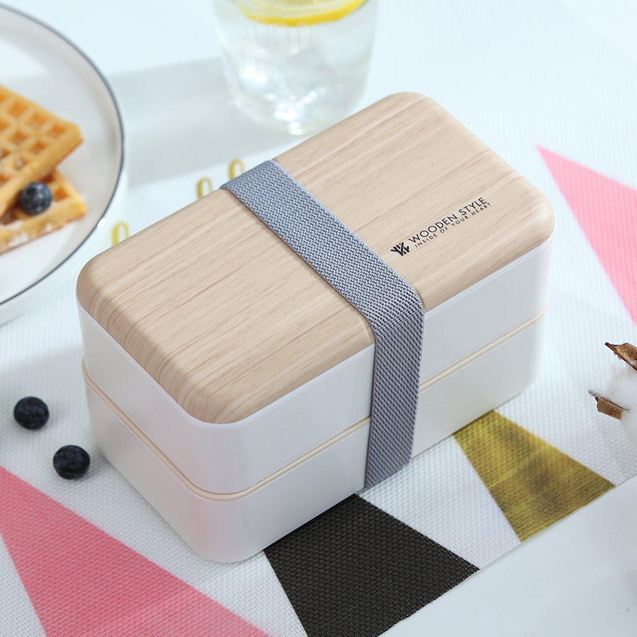 木感長方雙層飯盒(定制款)