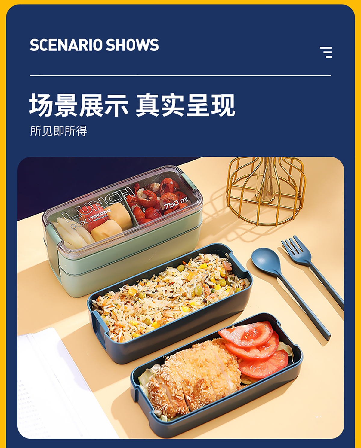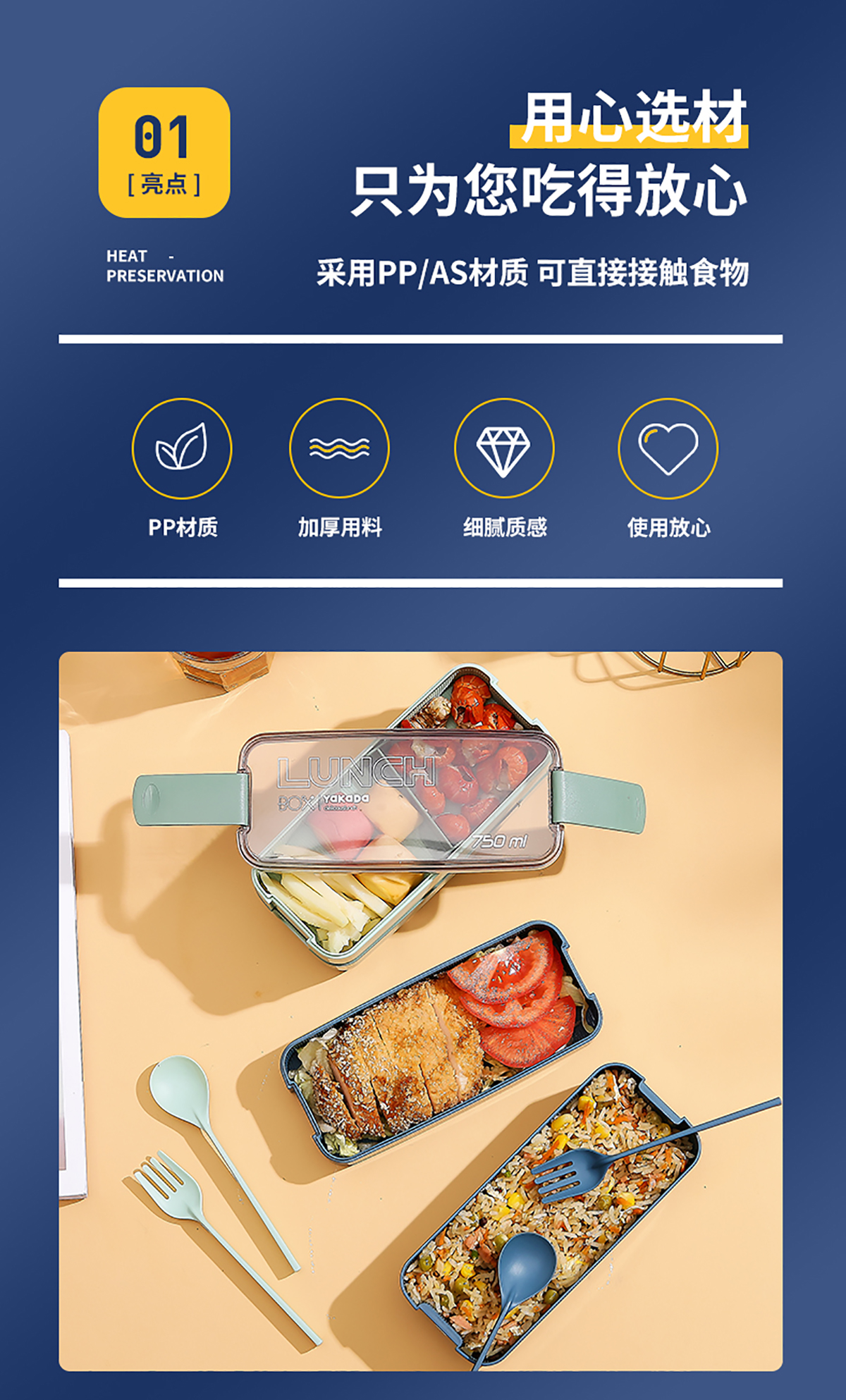 莫蘭迪透明蓋飯盒(長(zhǎng)扣)750ml