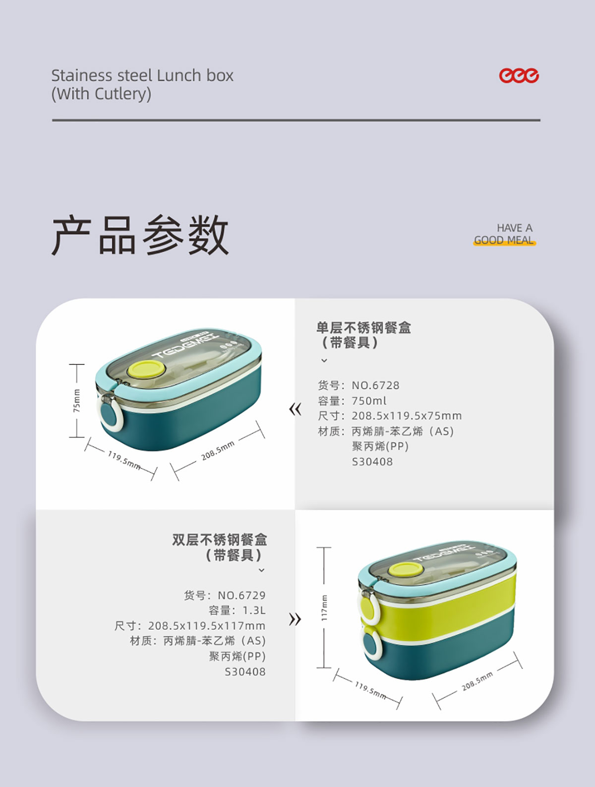 單層/雙層長(zhǎng)方形不銹鋼飯盒