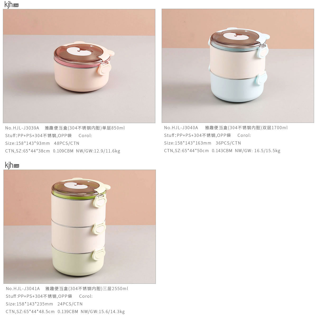 雅趣便當盒(304不銹鋼內(nèi)膽)單層850ml/雙層1700ml/三層2550ml(2022年新色)