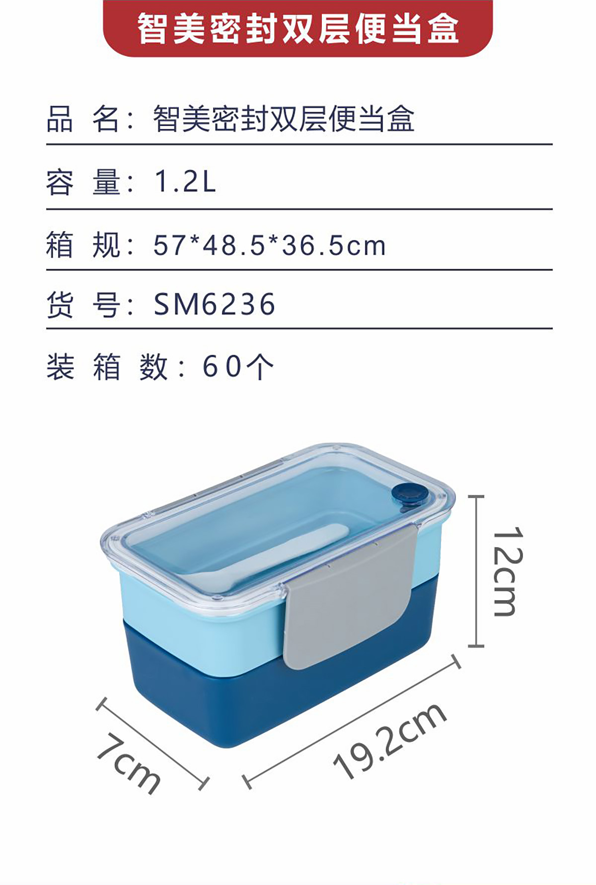 智美密封雙層便當(dāng)盒1.2L