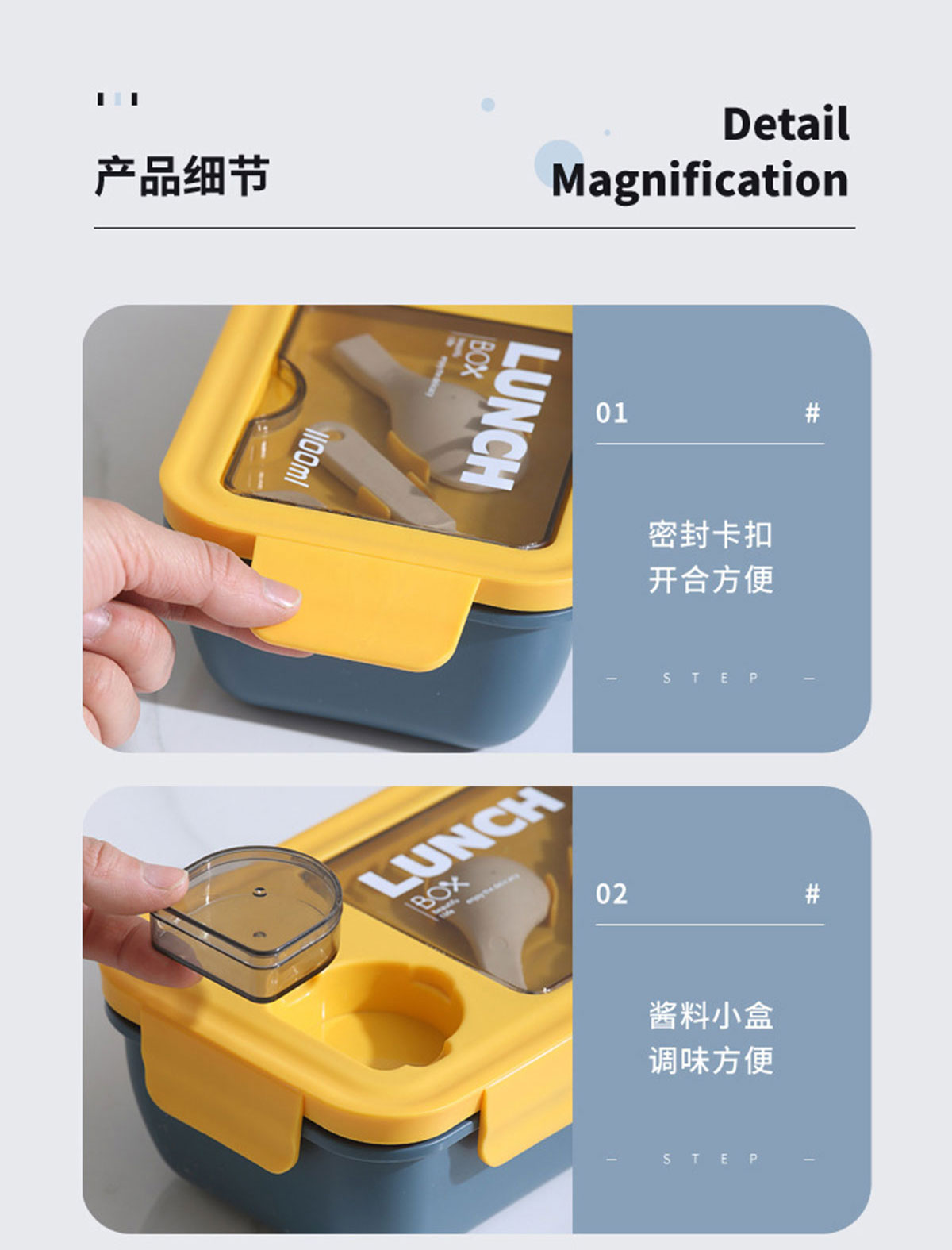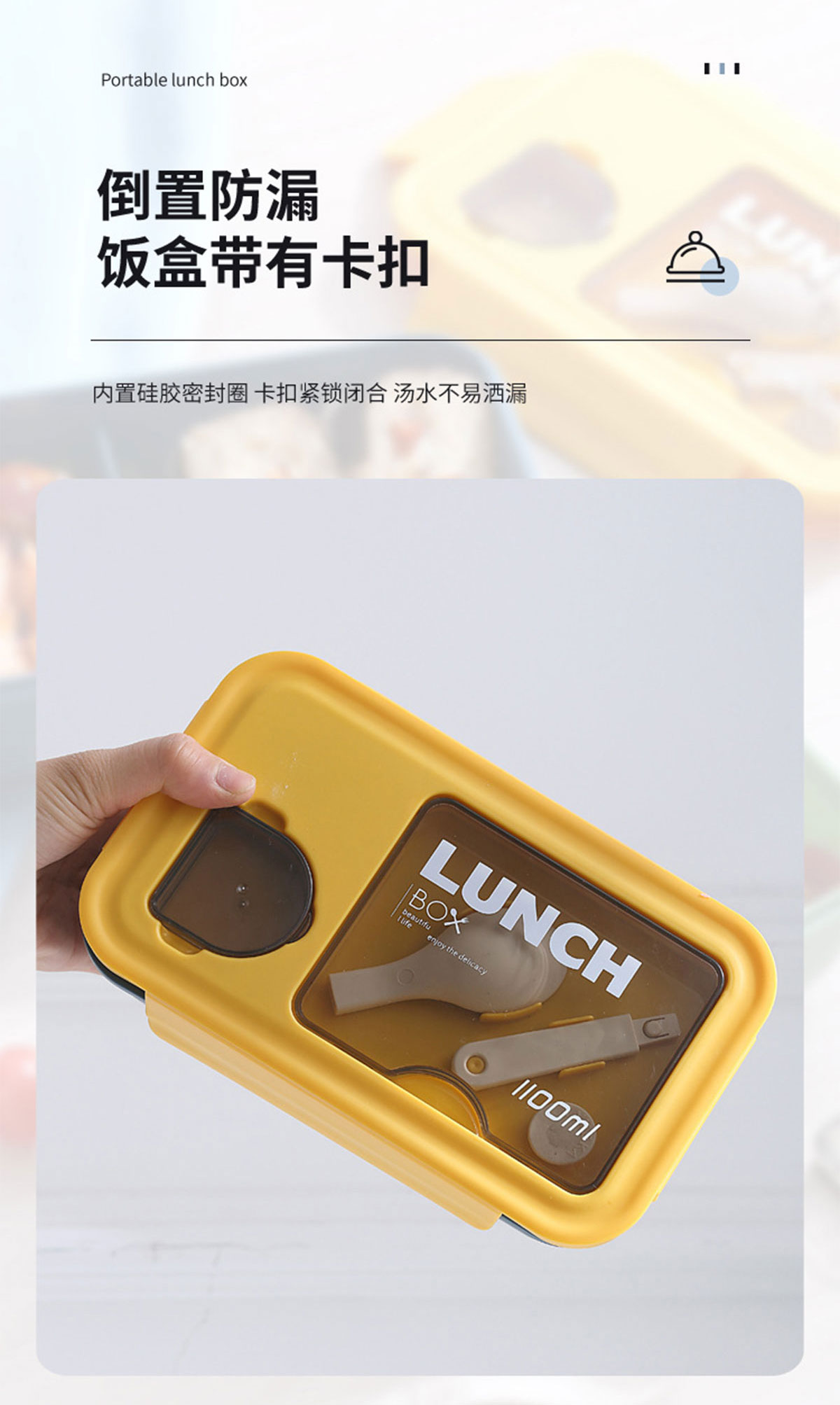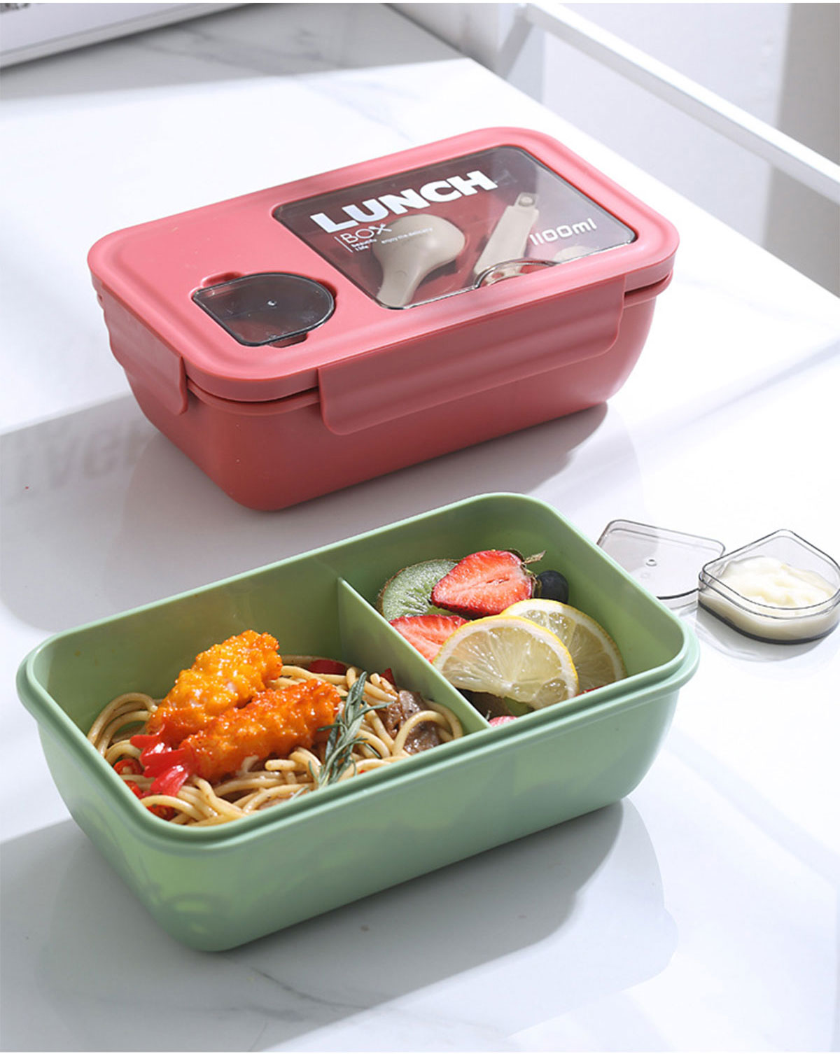 長方形醬料盒兩格飯盒1100ml