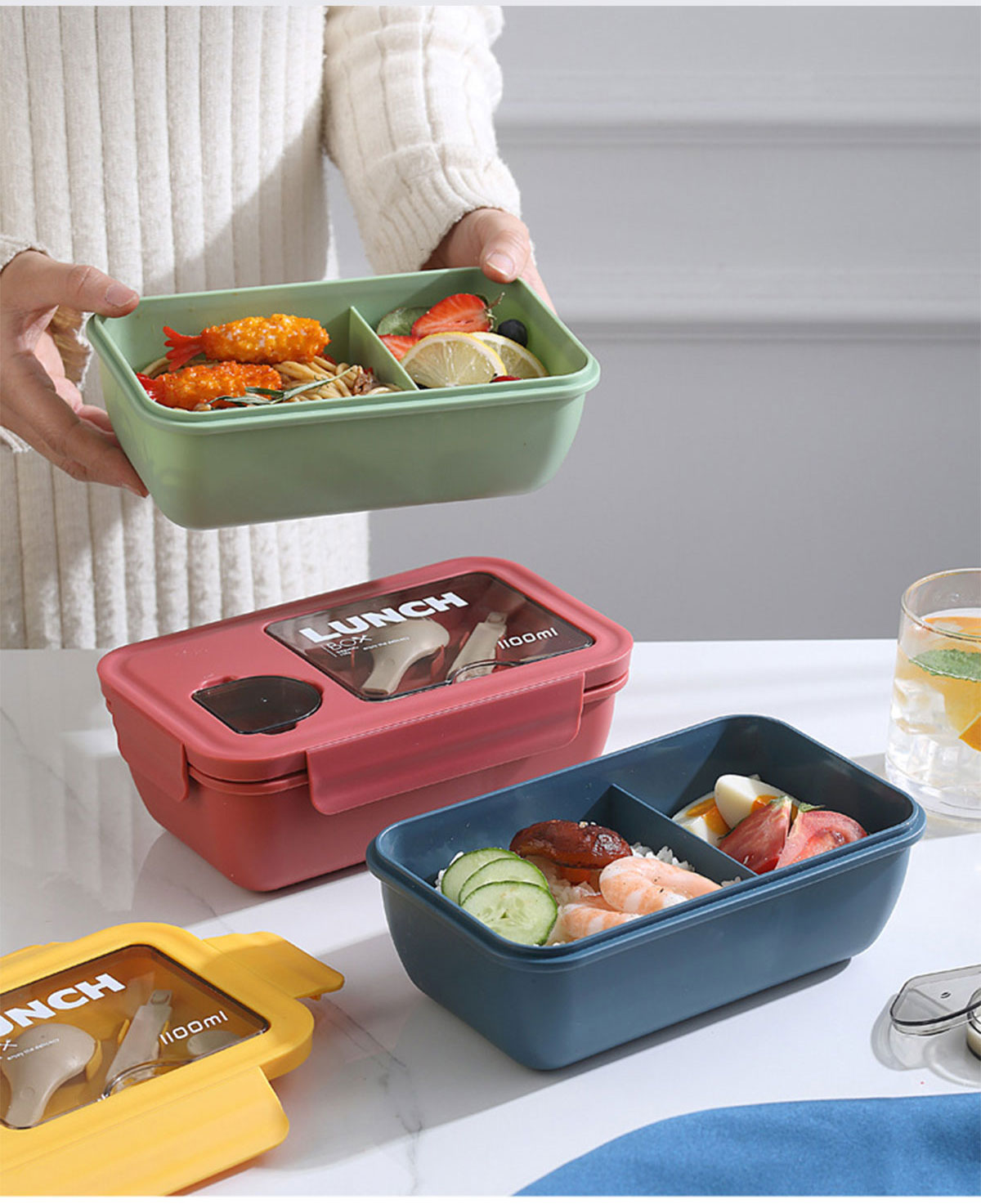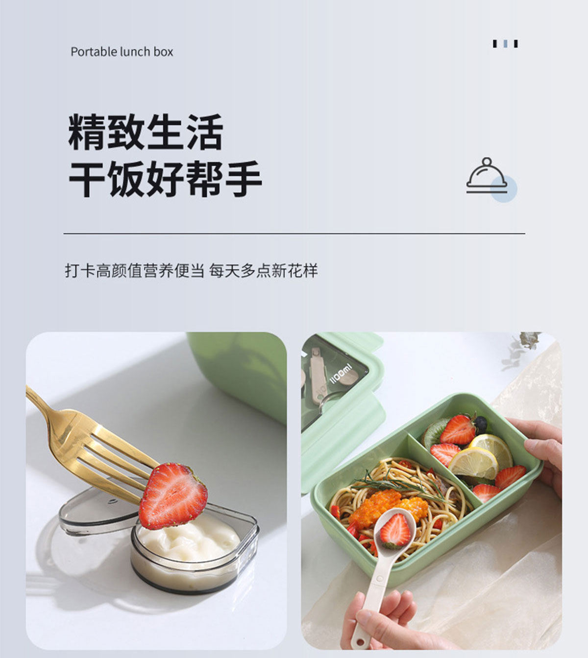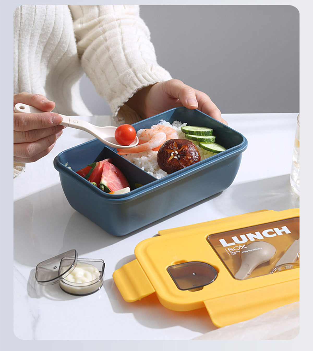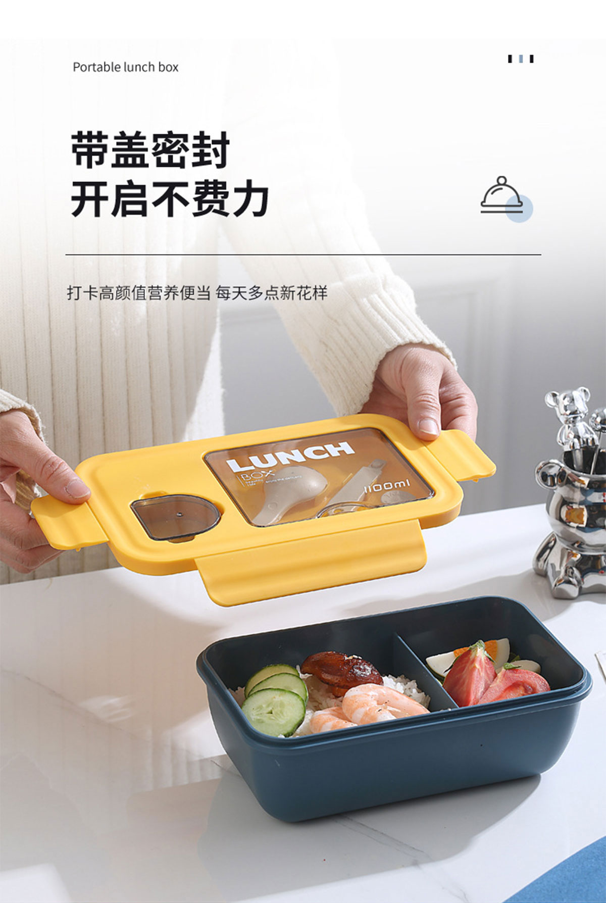 長方形醬料盒兩格飯盒1100ml