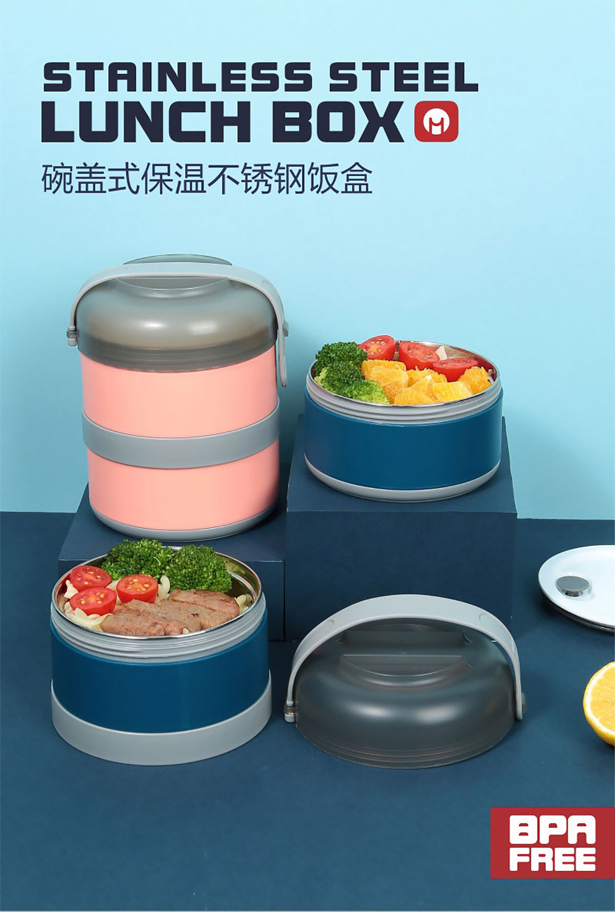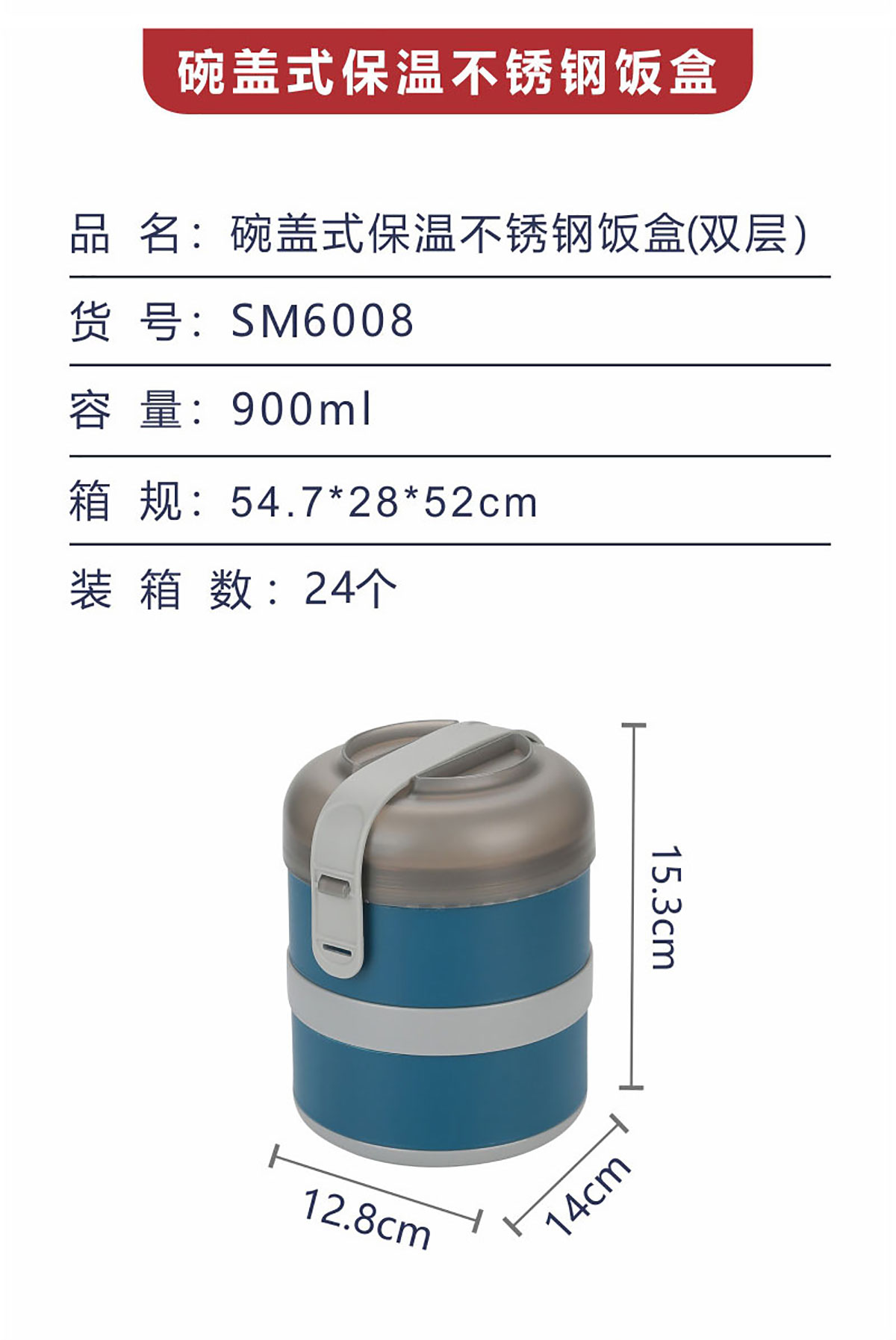 碗蓋式保溫不銹鋼飯盒雙層900ml 2024新色