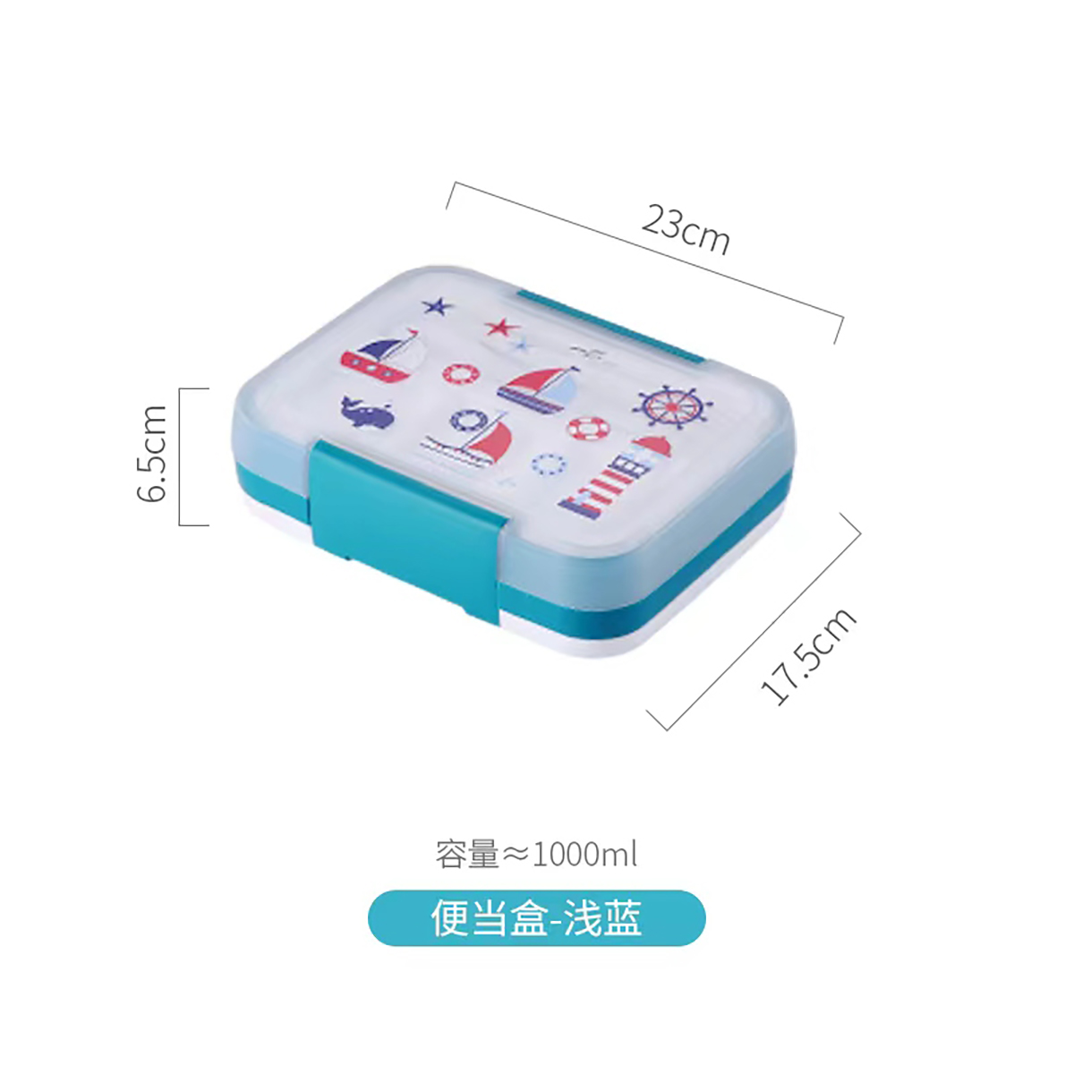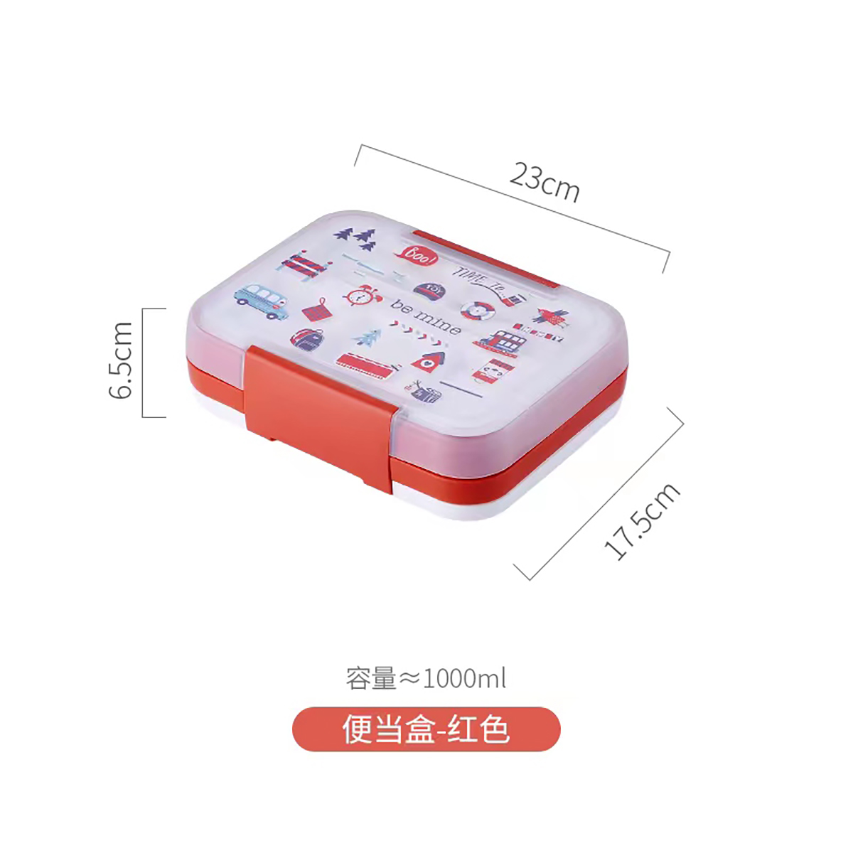 卡通四色長(zhǎng)方形飯盒1500ml