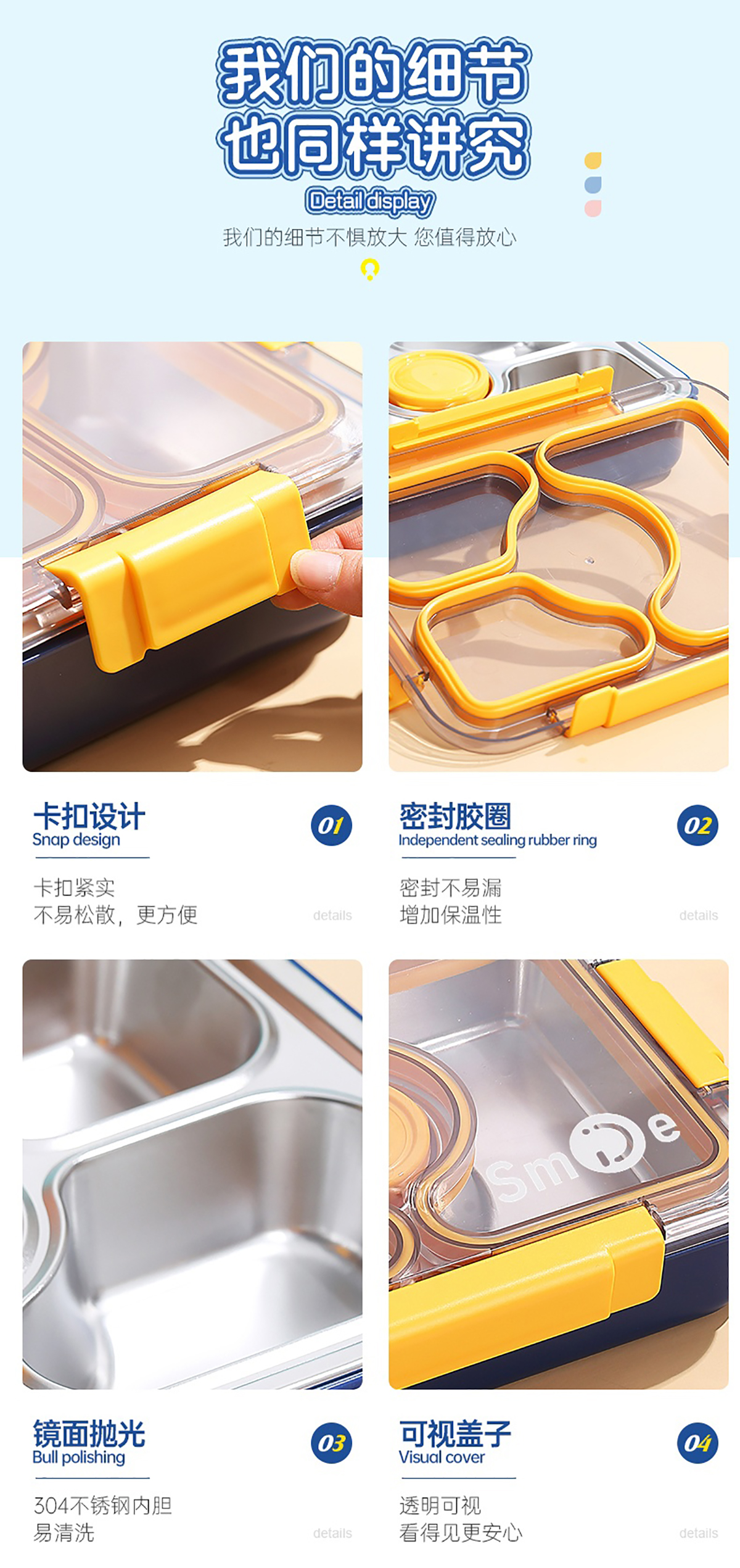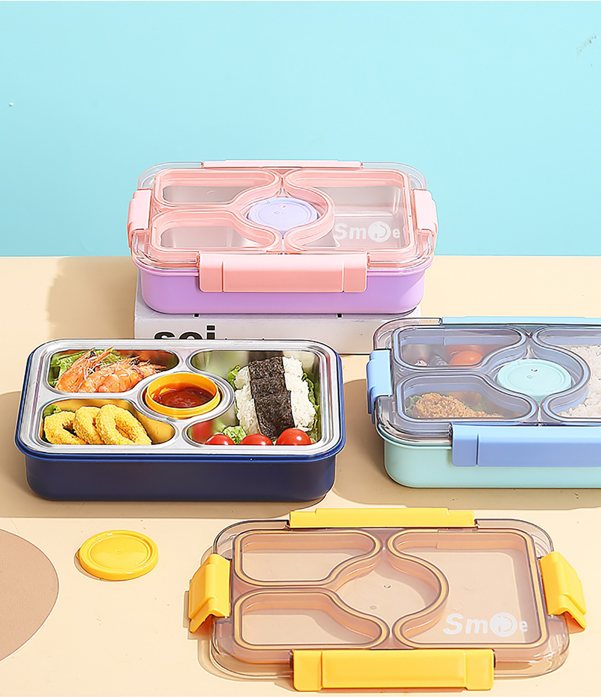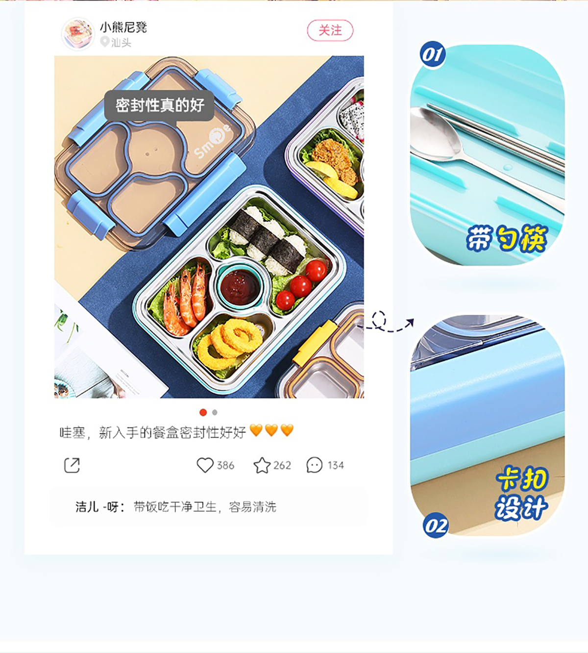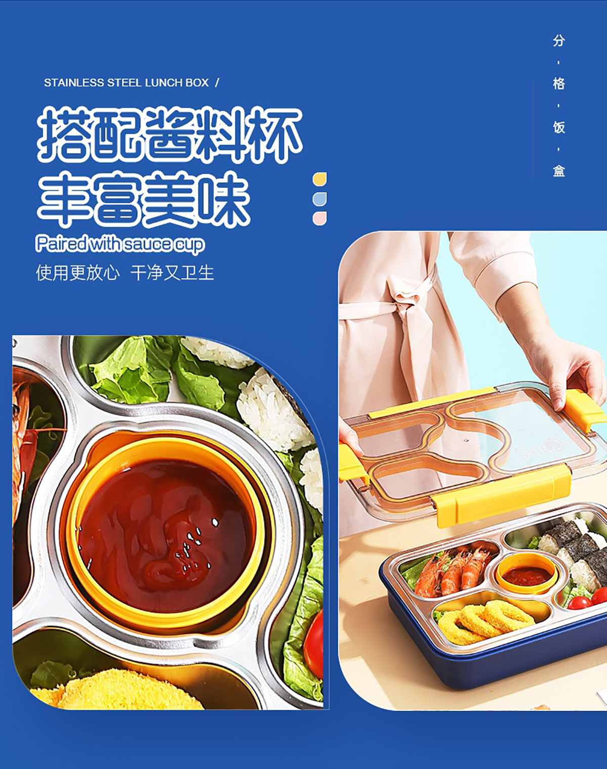 950ml獨立密封不銹鋼餐盒(3格+PP碗80ml+不銹鋼勺筷)