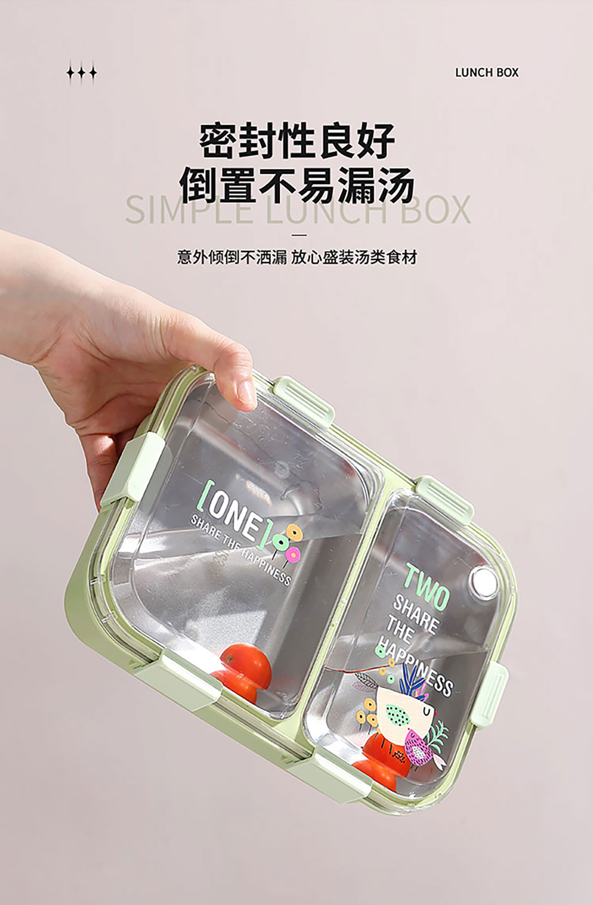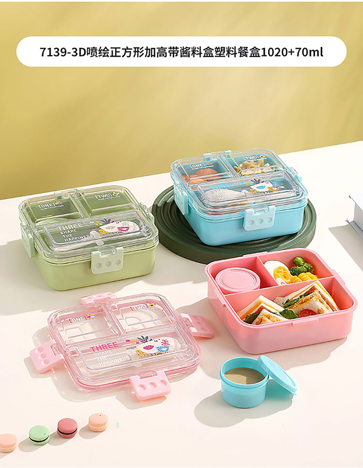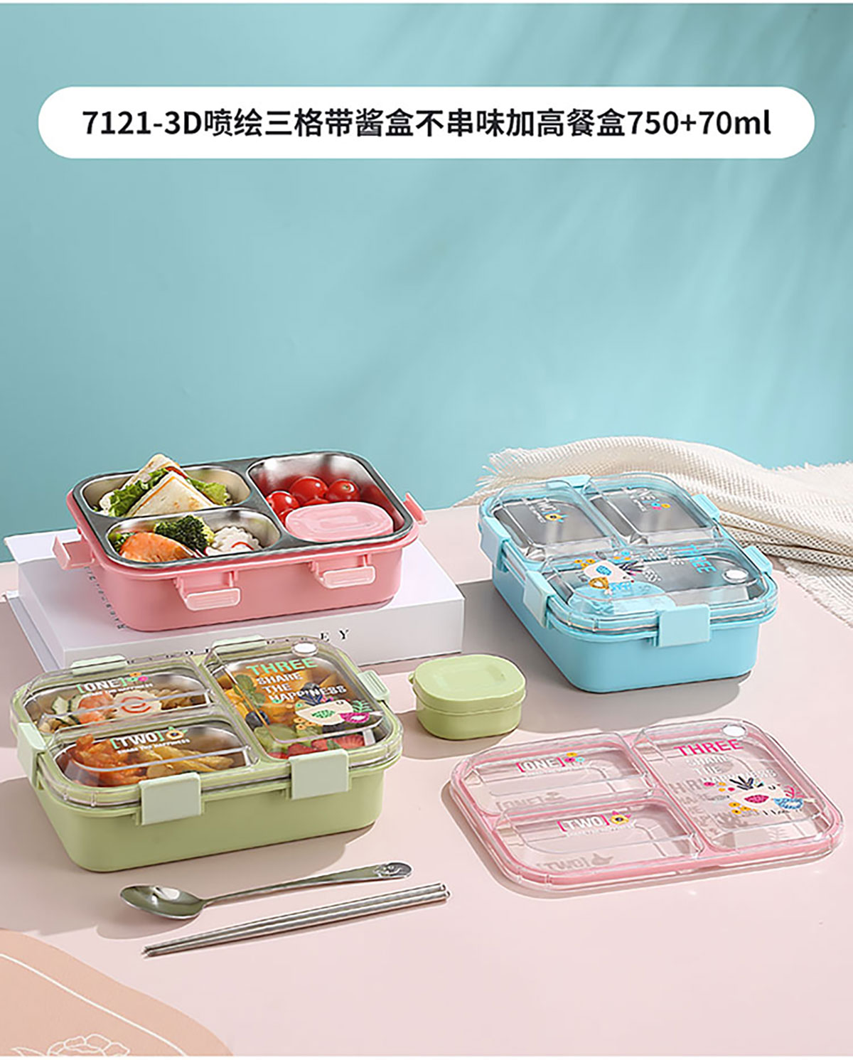 3D噴繪二格/三格帶醬盒/三格帶碗不串味加高餐盒 長方形/正方形