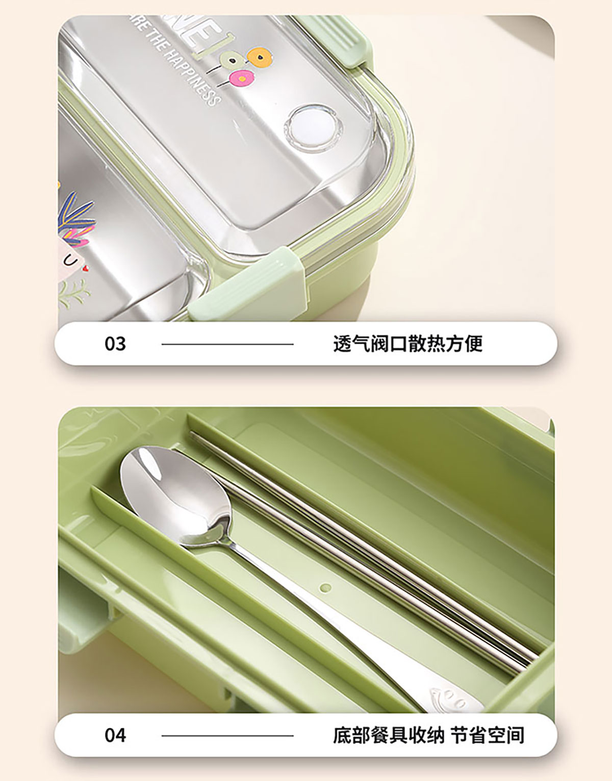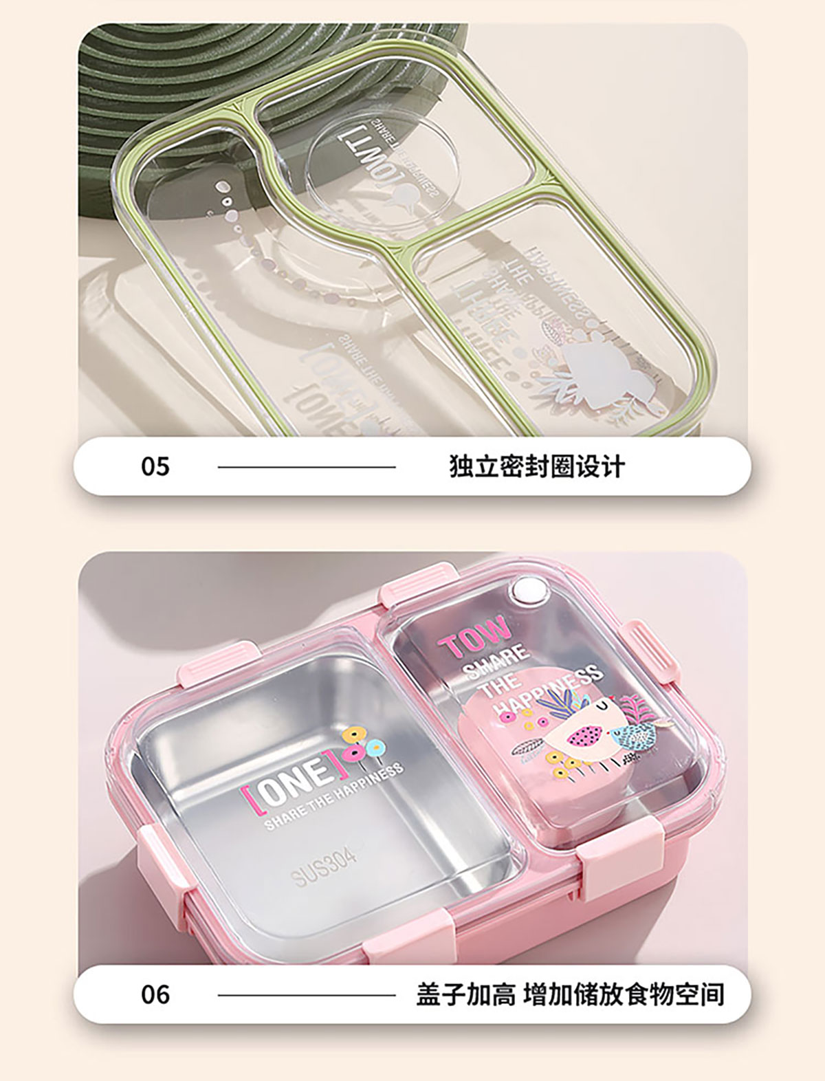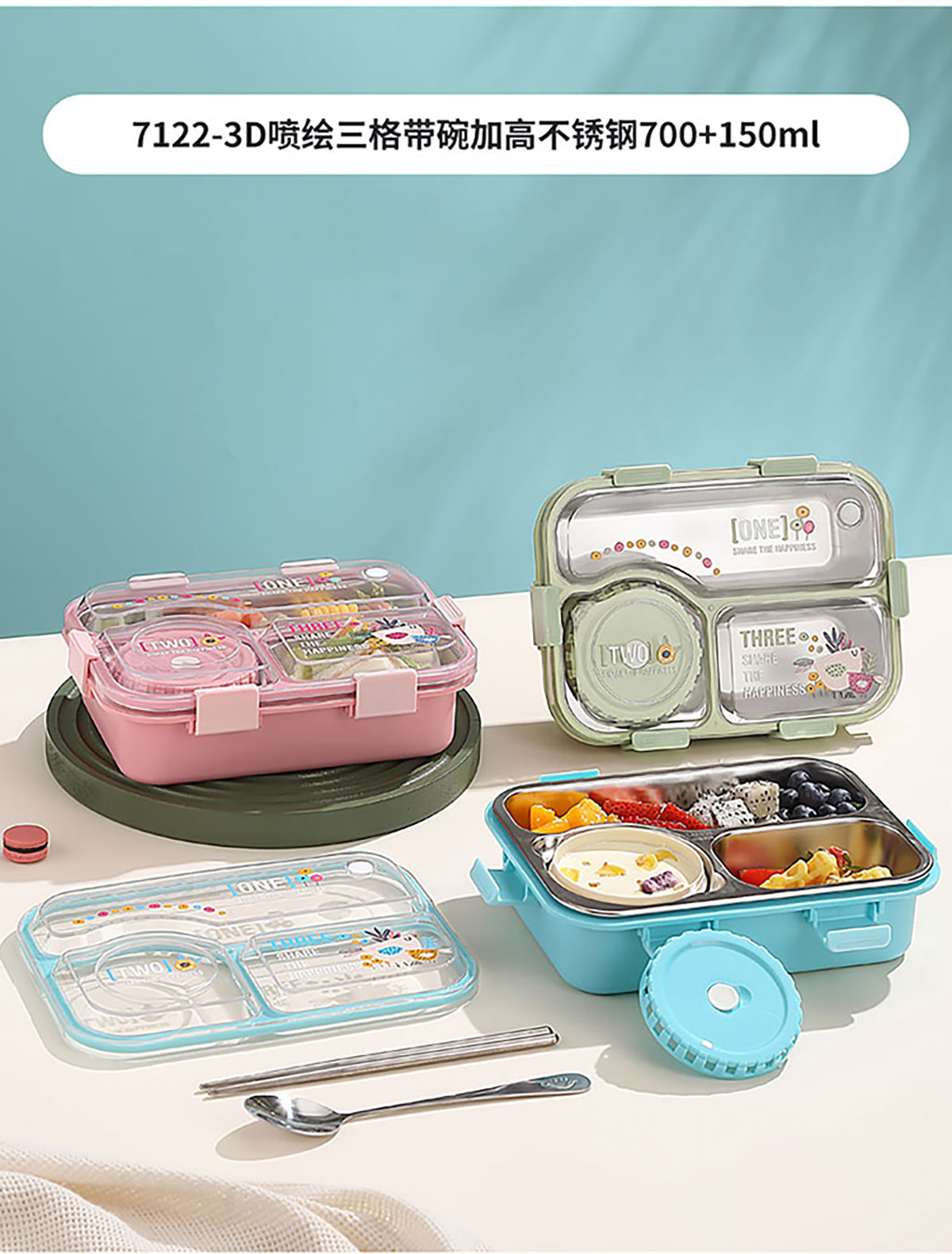 3D噴繪二格/三格帶醬盒/三格帶碗不串味加高餐盒 長方形/正方形