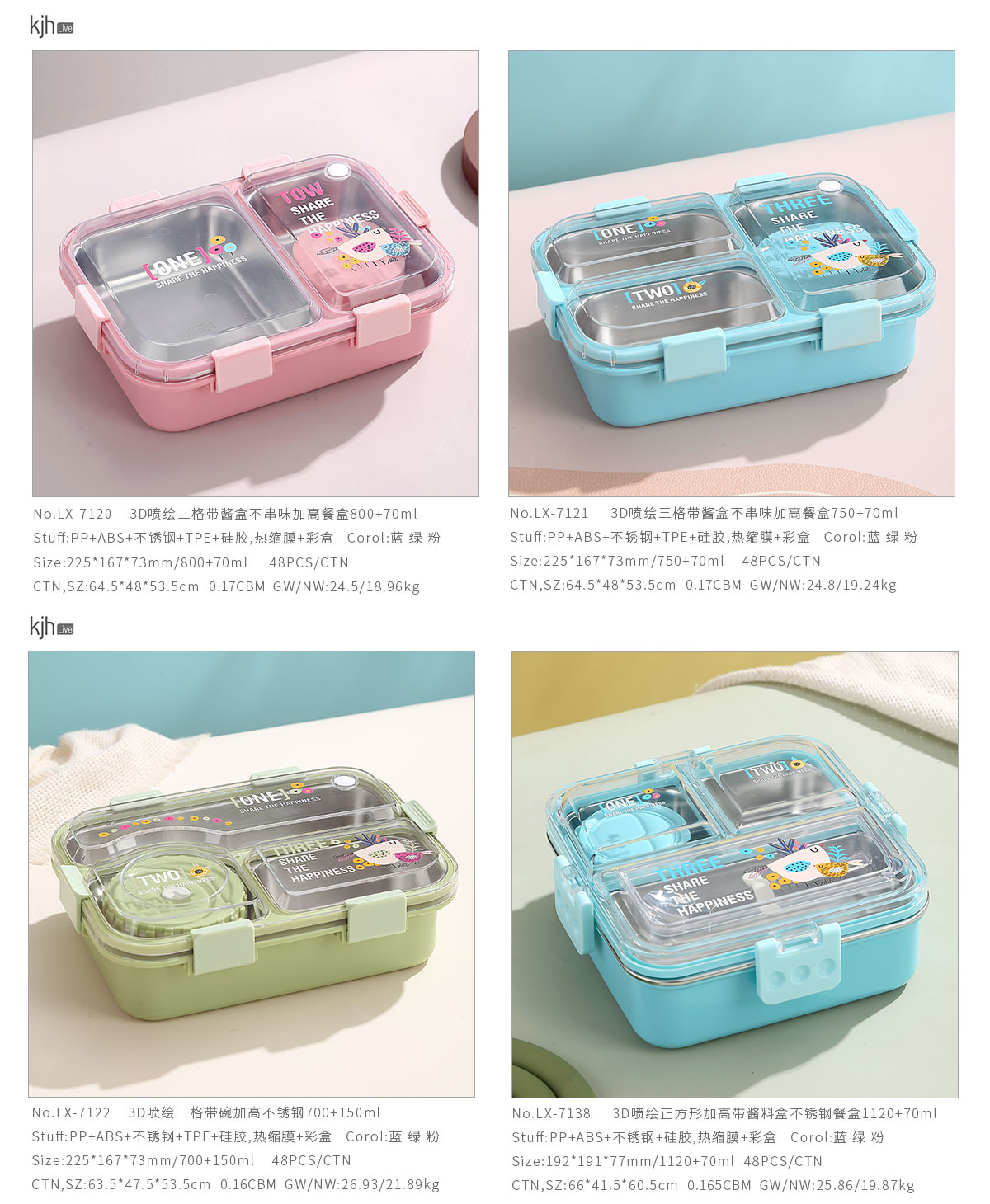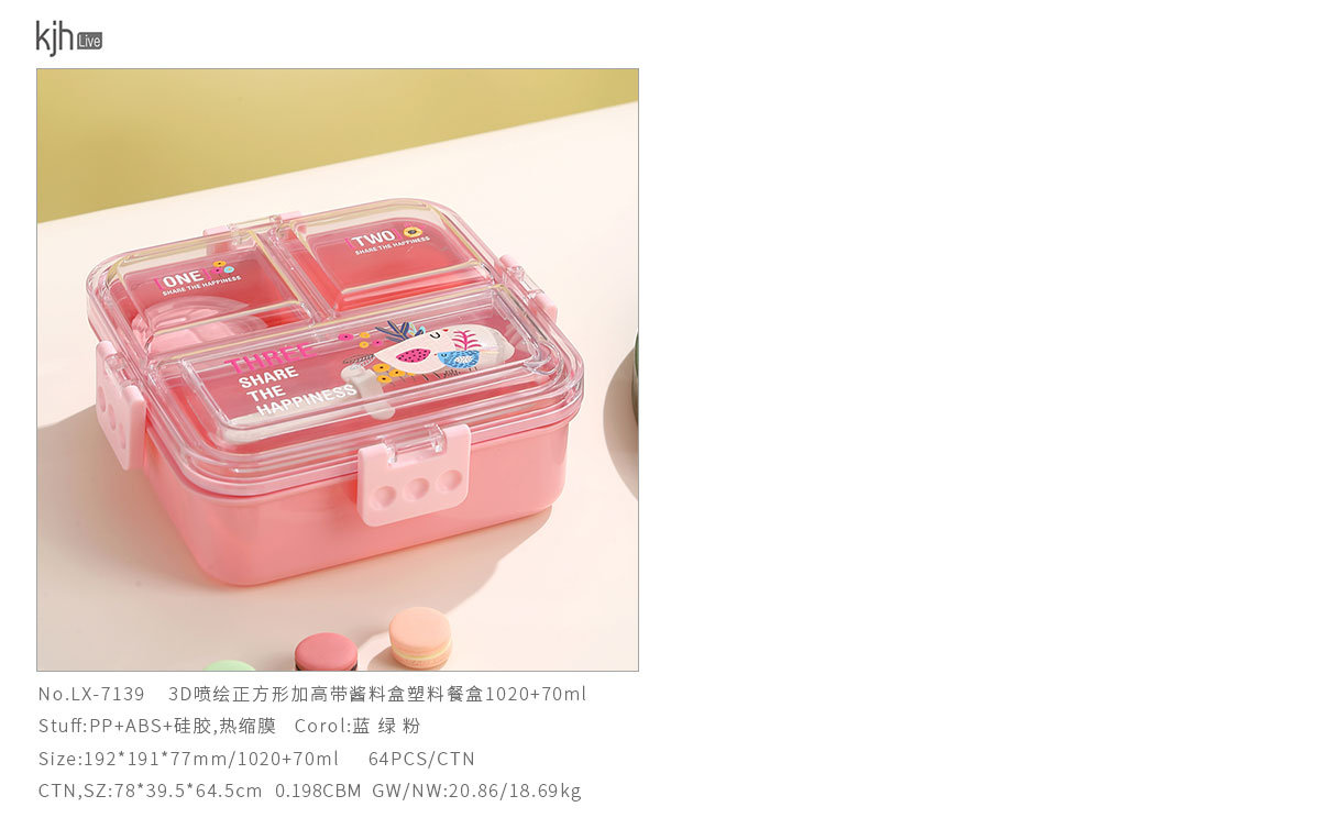 Size: LX-7120(長方形二格帶醬盒):225*167*73mm/800+70ml