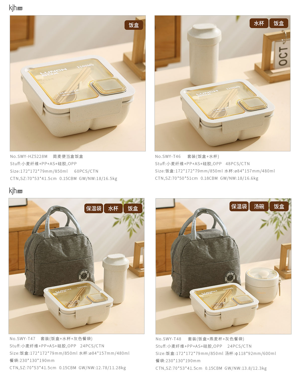 SWY-T48:飯盒:172*172*79mm/850ml 湯杯:φ118*92mm/600ml 餐袋:230*130*190mm