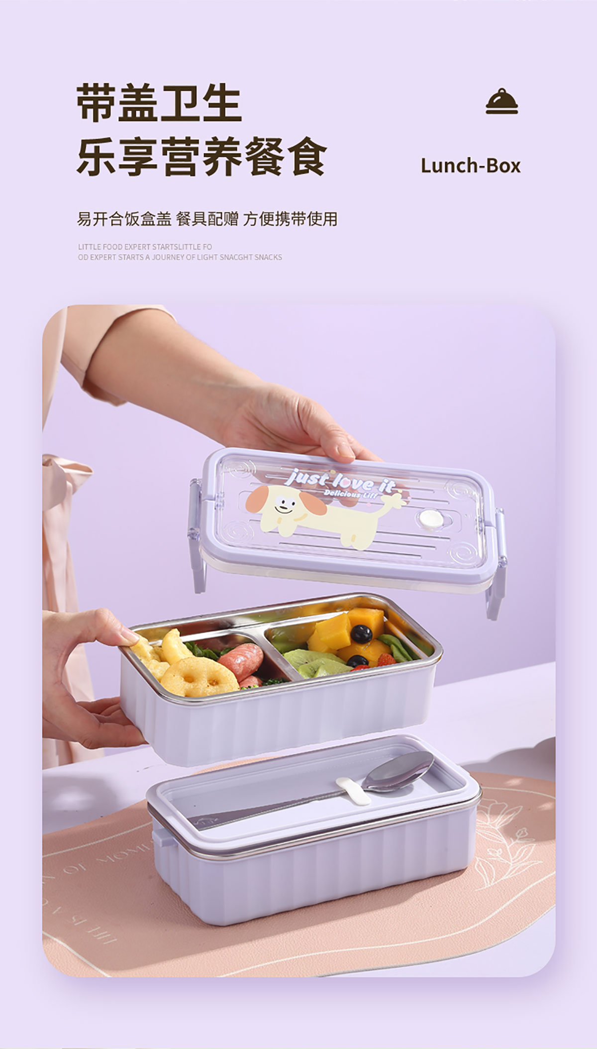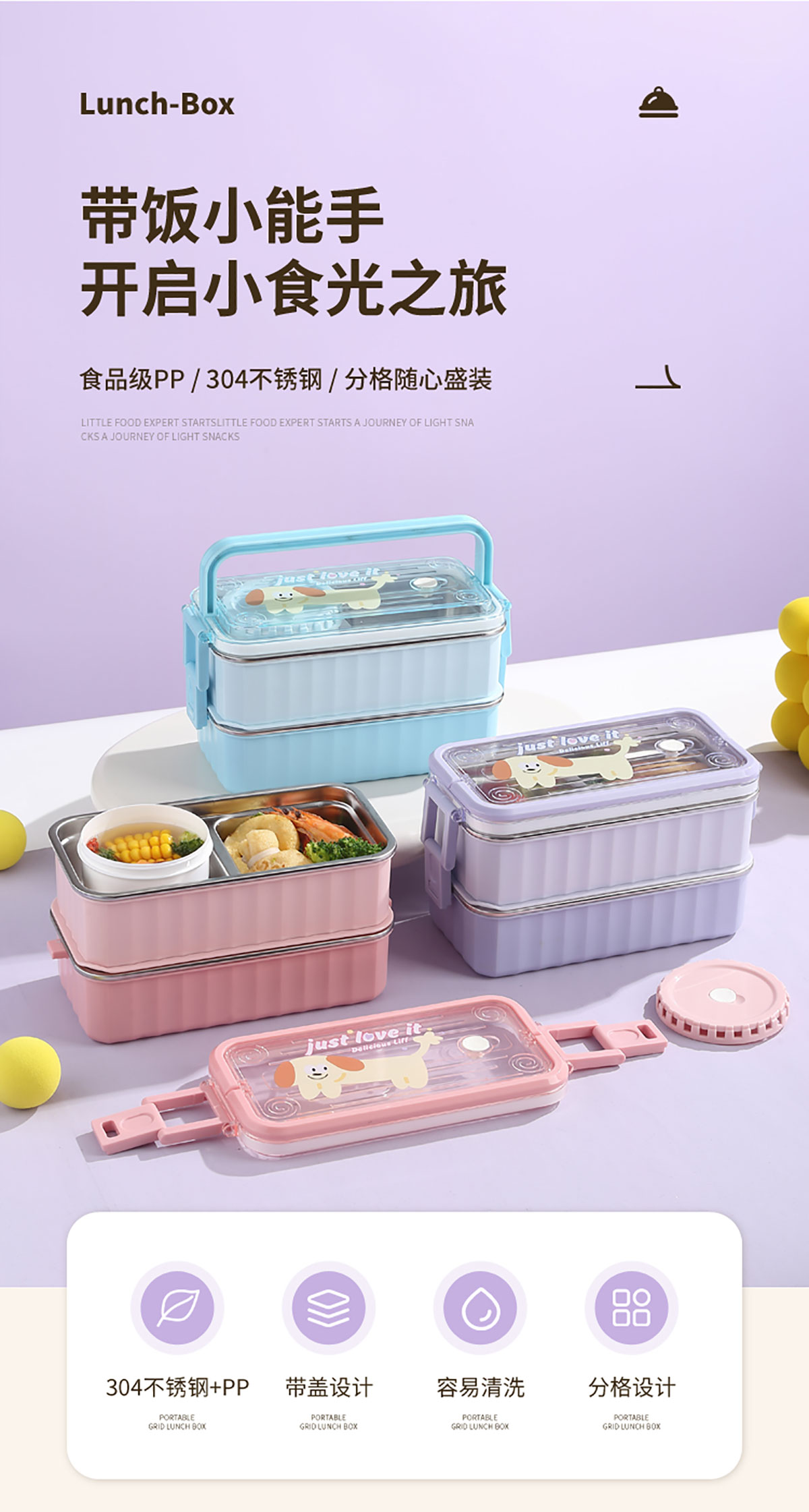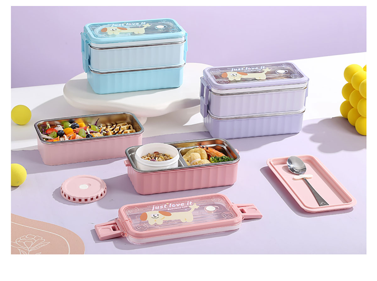 卡通手提單層/雙層餐盒帶碗 塑料/不銹鋼