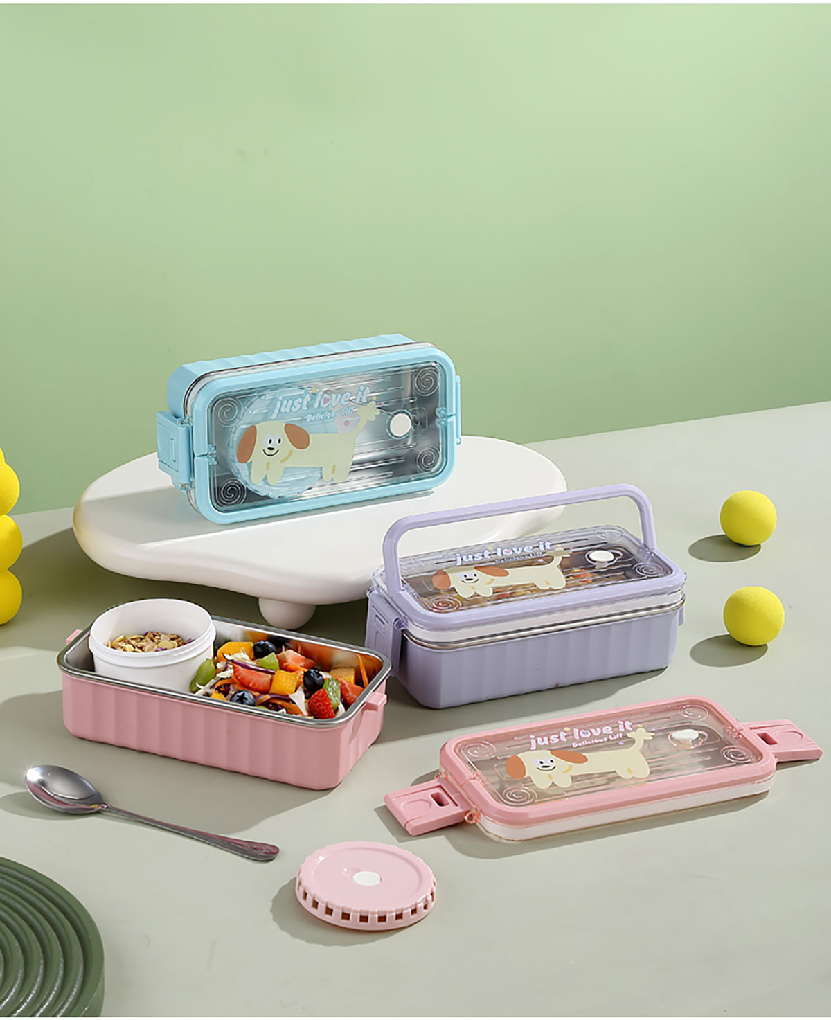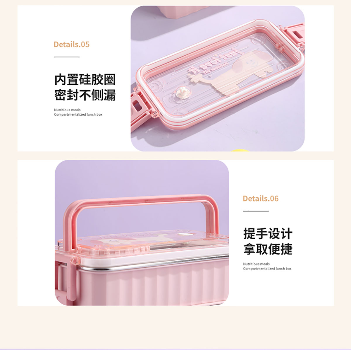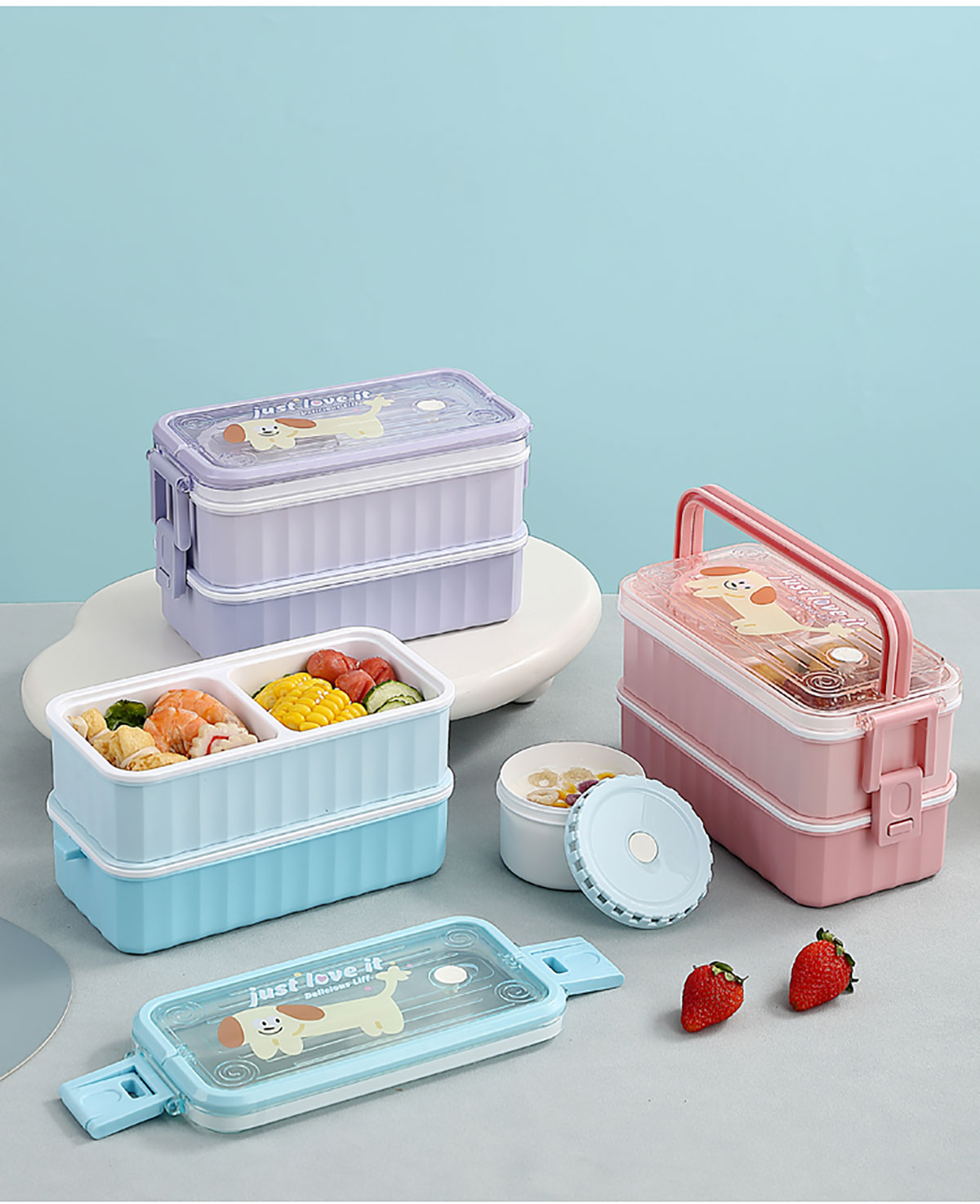 卡通手提單層/雙層餐盒帶碗 塑料/不銹鋼