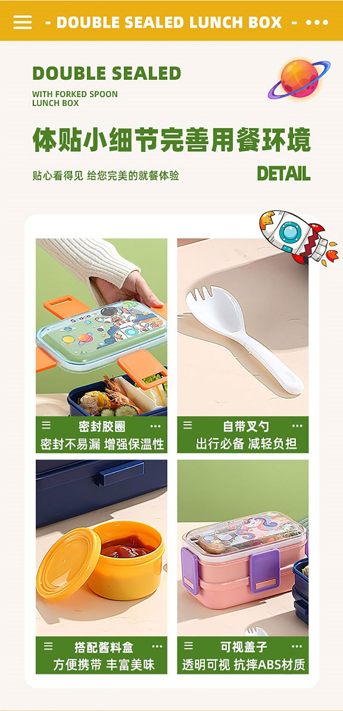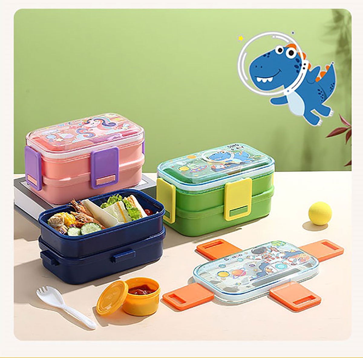 彩光卡通雙層餐盒(700mlx2+醬料杯80ml+pp勺)