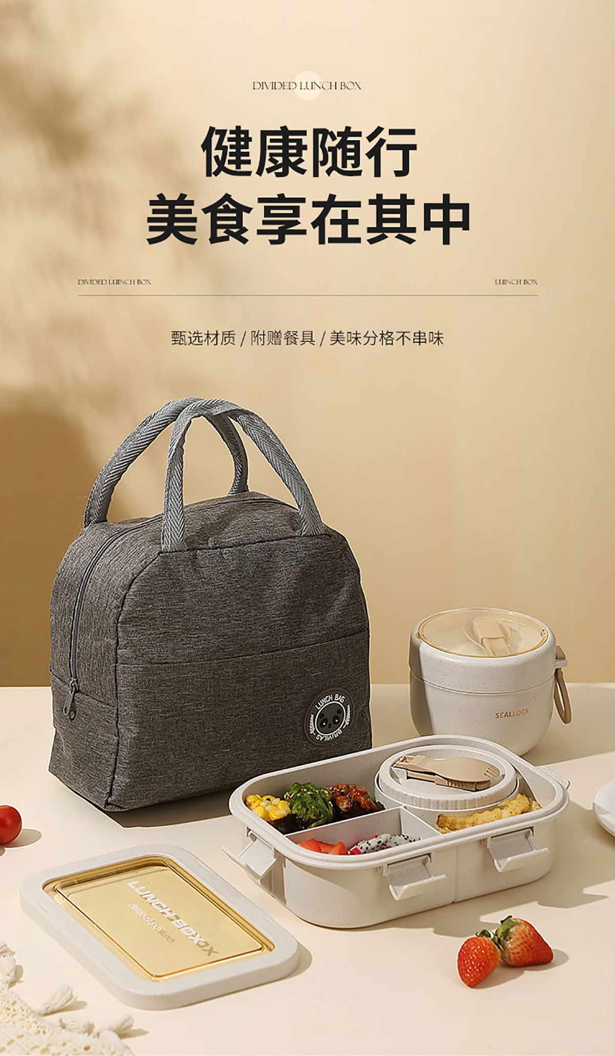 SWY-HC67103M(四格):飯盒:228*165*70mm/1350ml 湯碗:Φ96*51mm/250ml