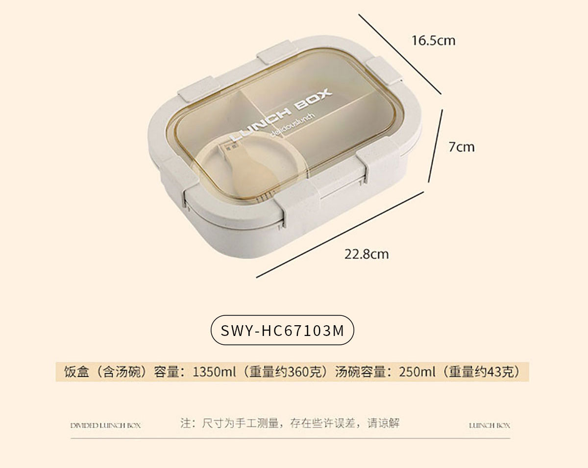 Size: SWY-HC67101M(三格):飯盒:201*137*71mm/1000ml 湯碗:Φ96*51mm/250ml