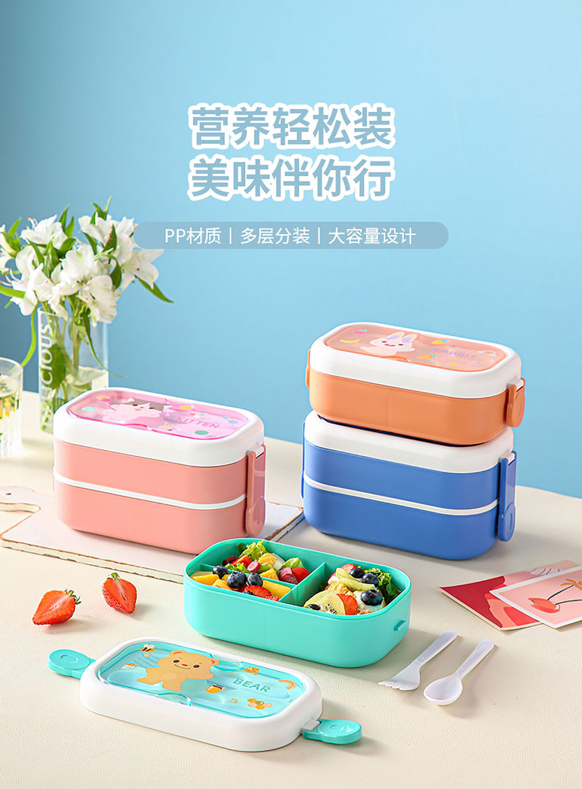 樂派卡通飯盒(單層/雙層/單層套裝)