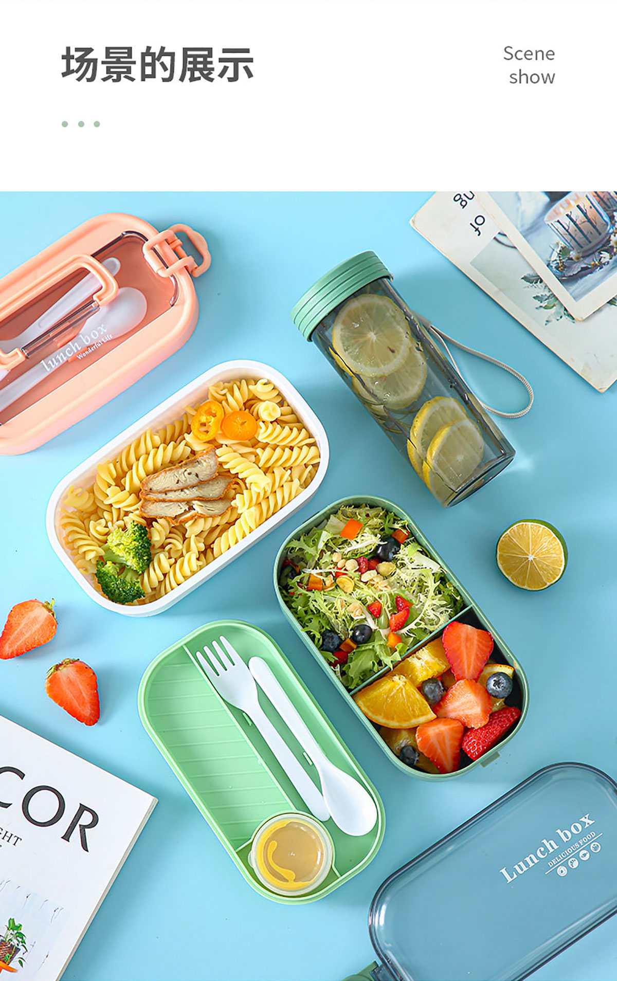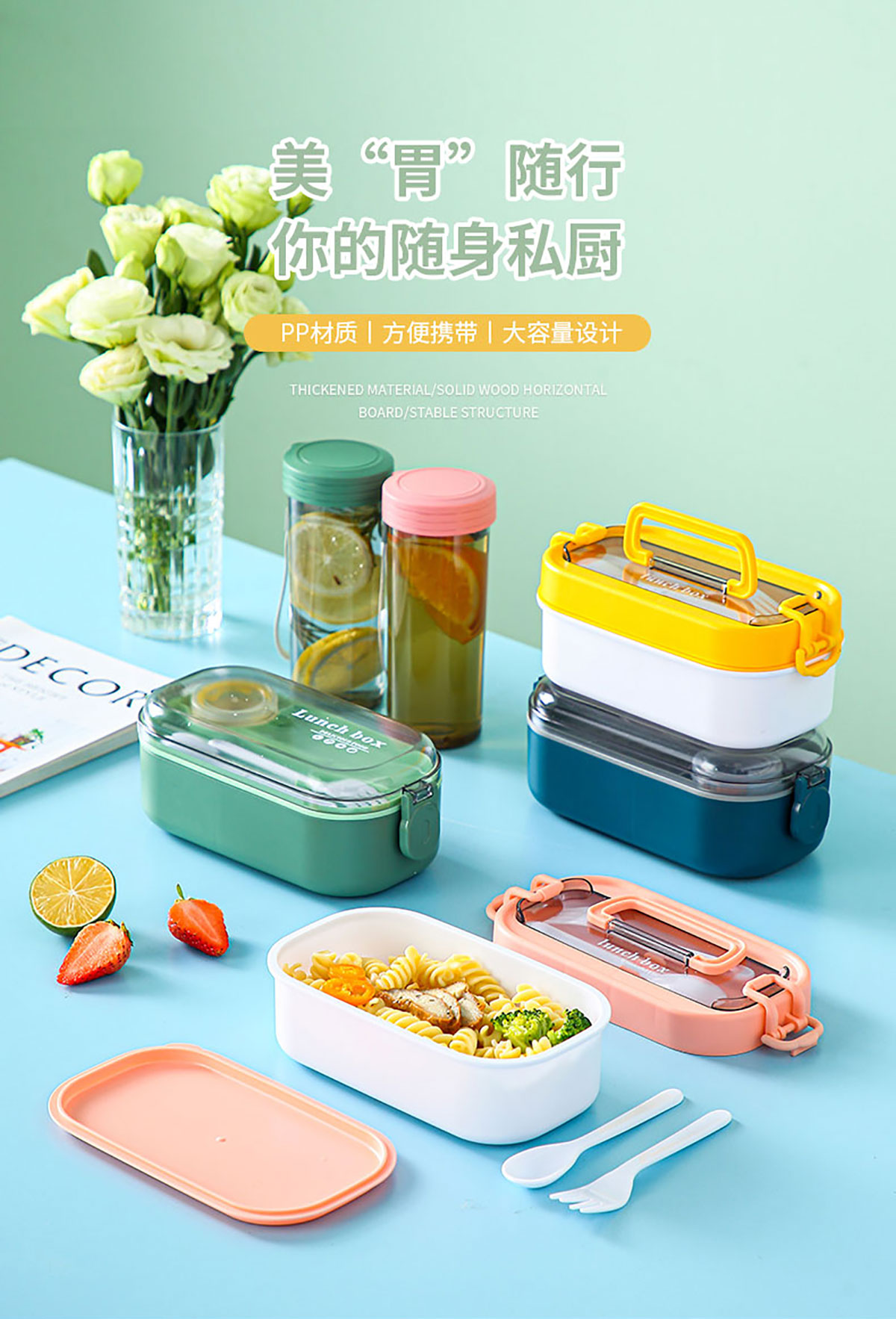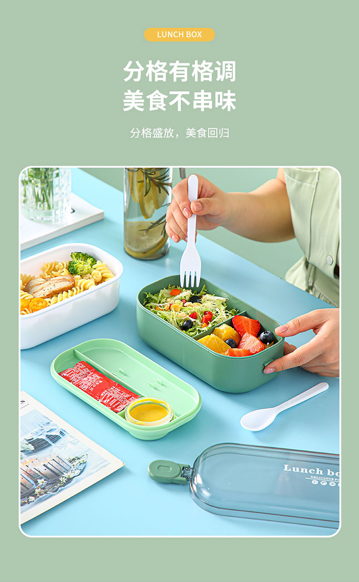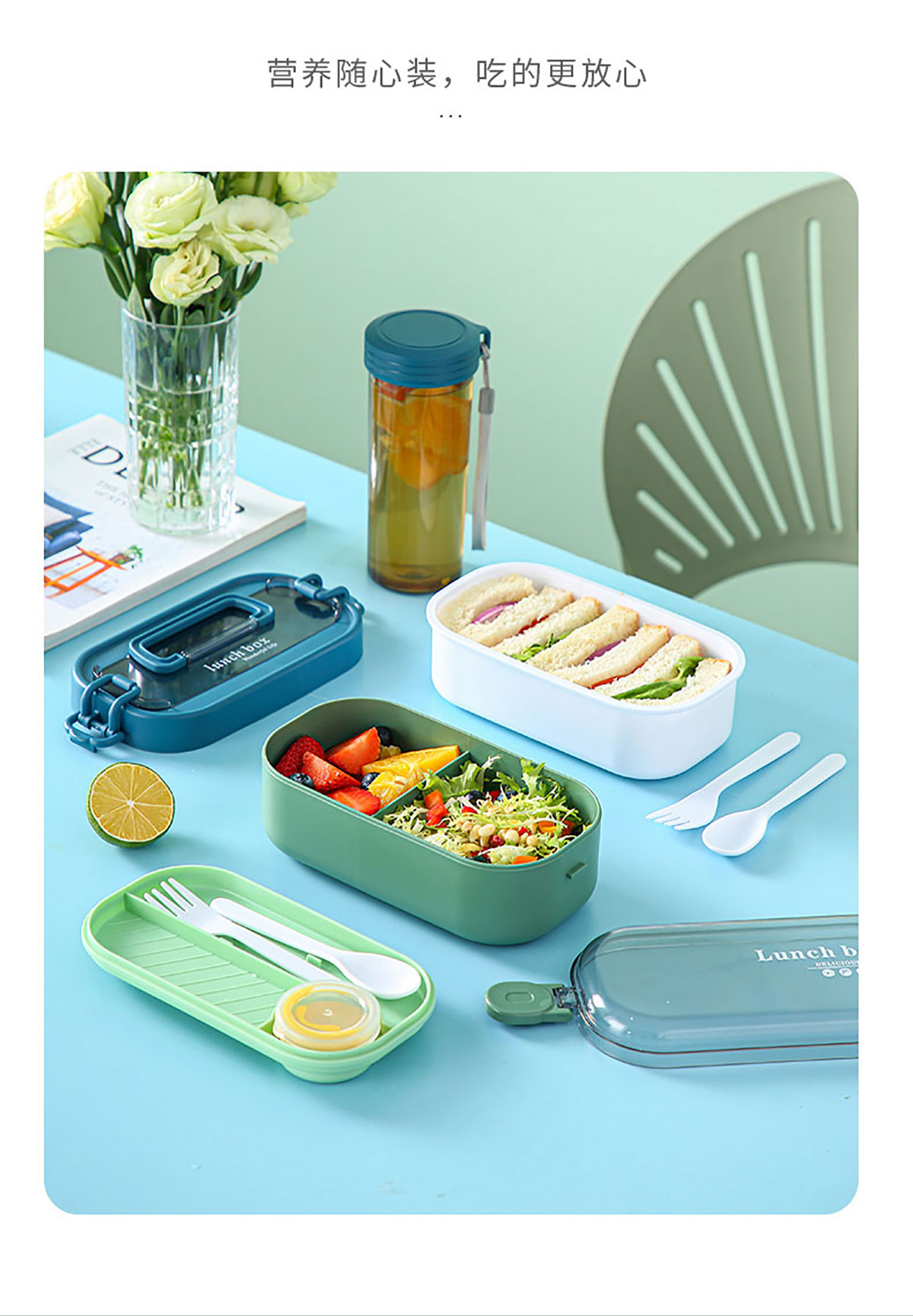 韓式/透明蓋套裝水杯飯盒(單層)