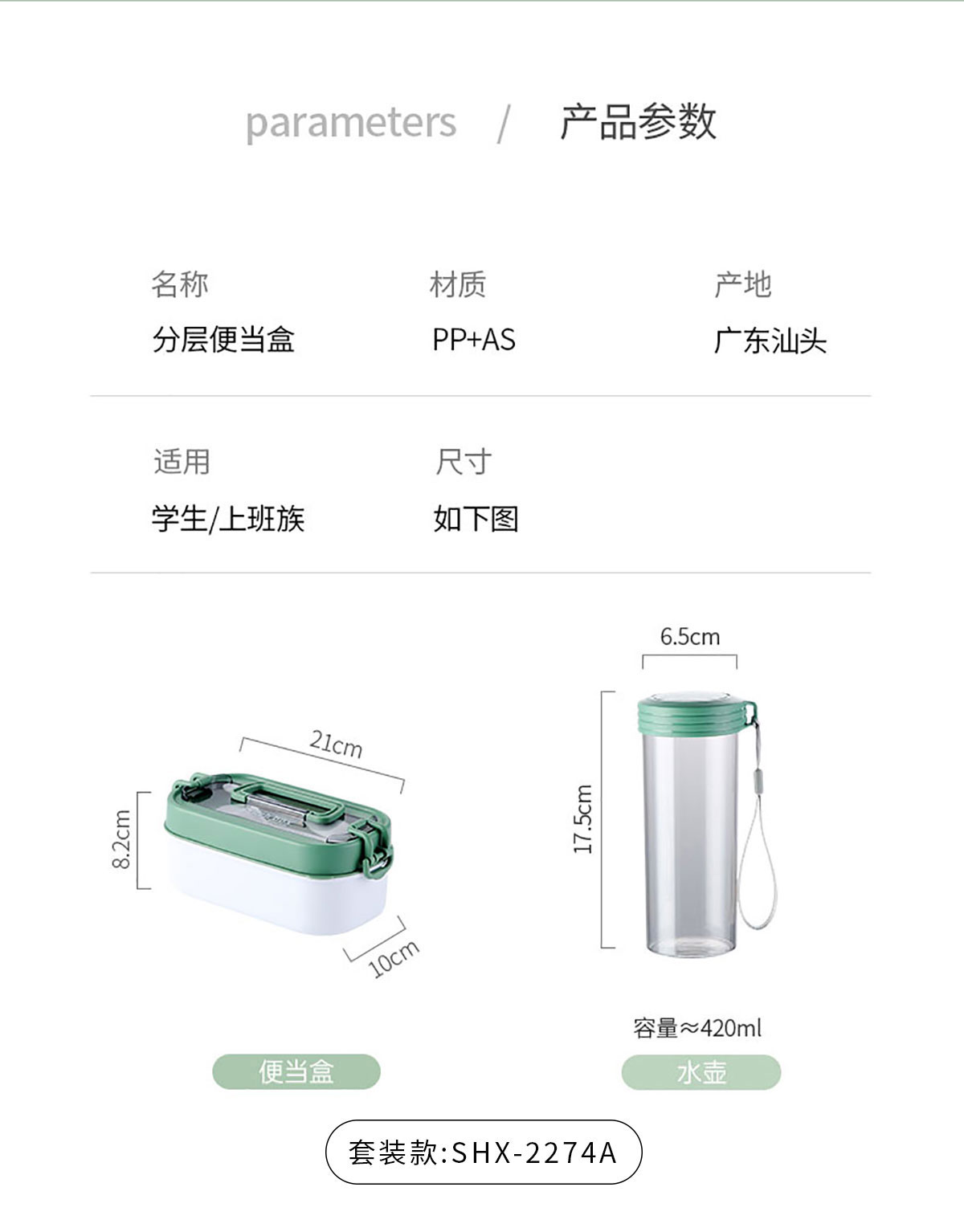 Size: SHX-2274A:飯盒:210*100*82mm 水杯:Φ65*175mm