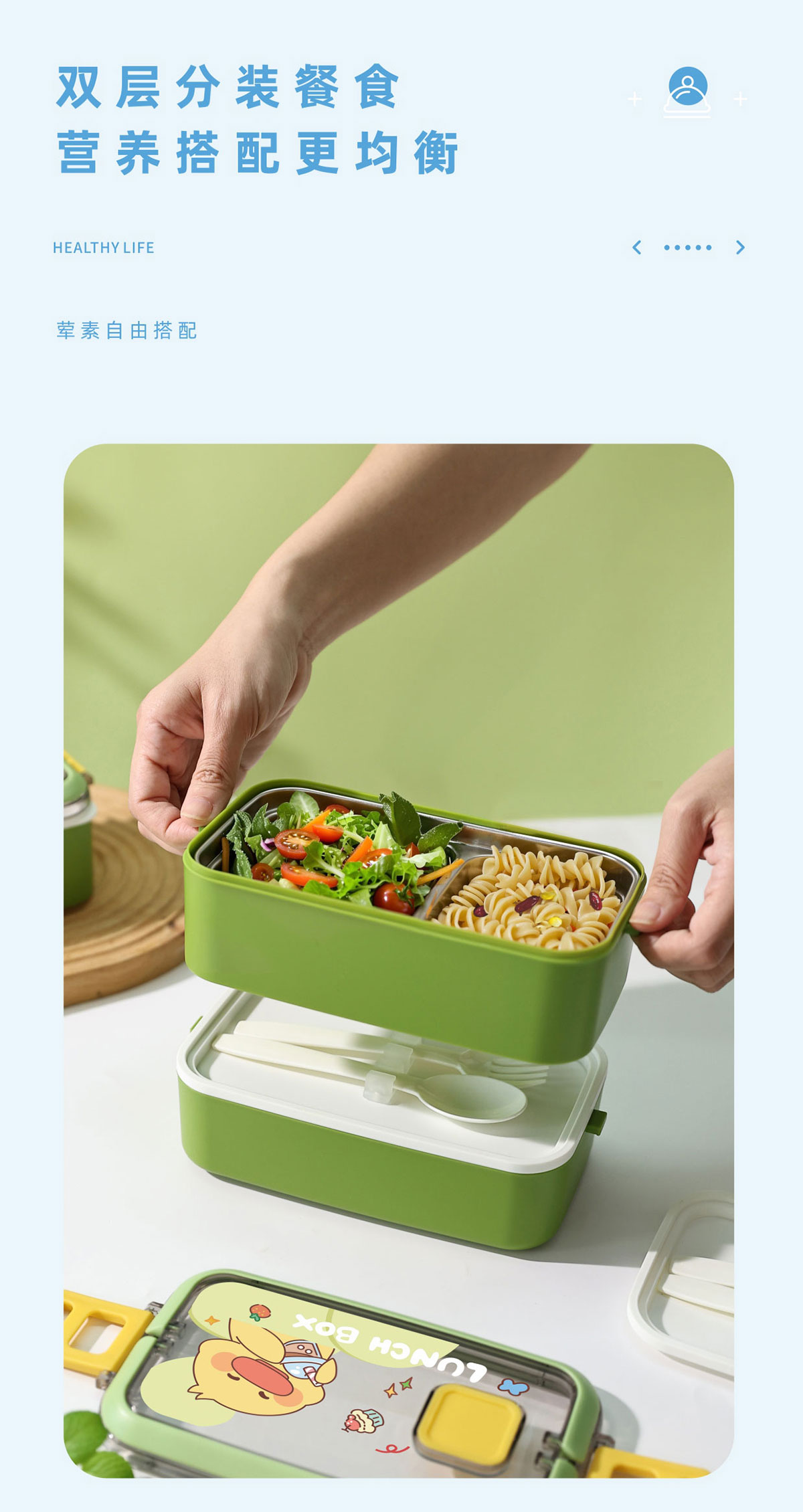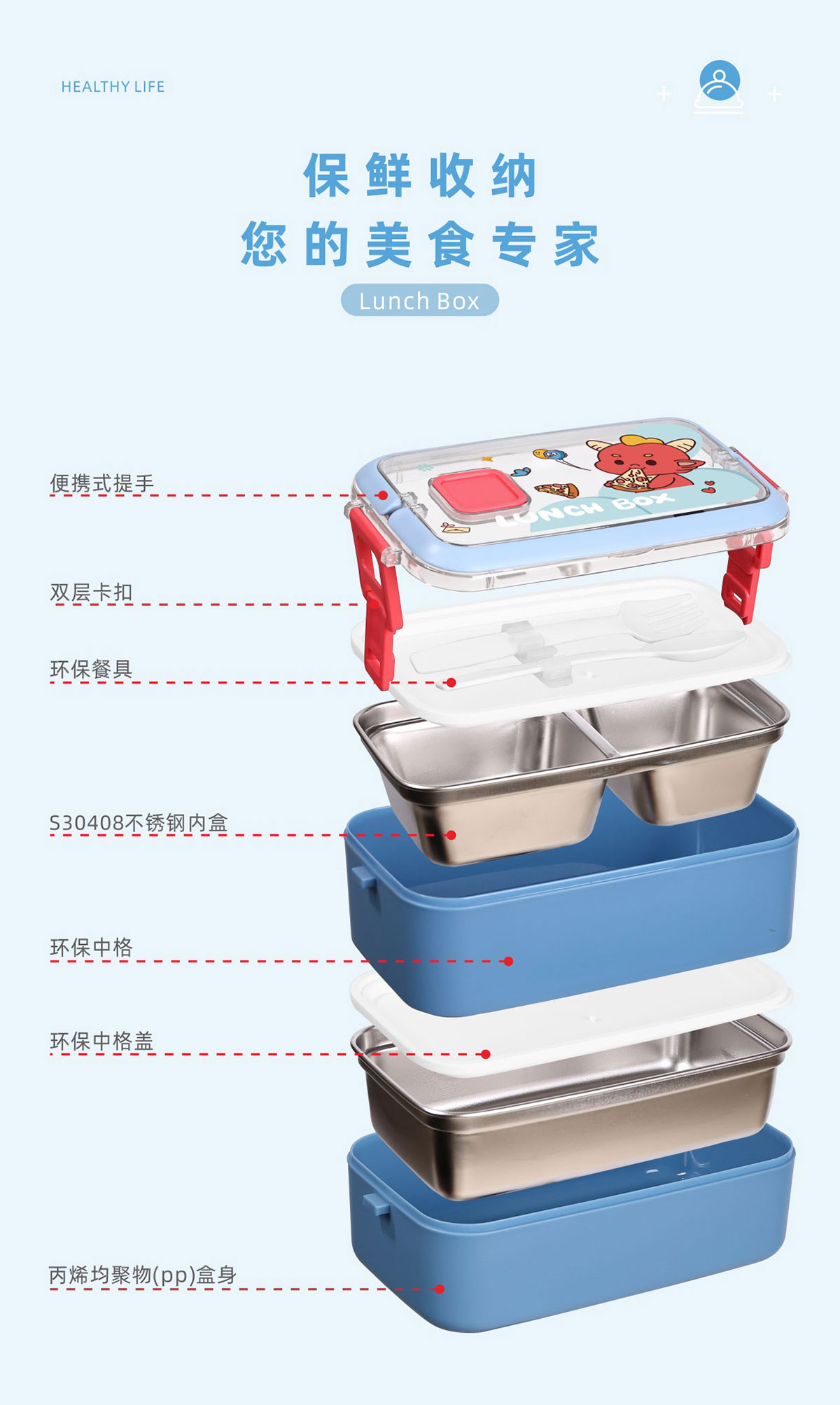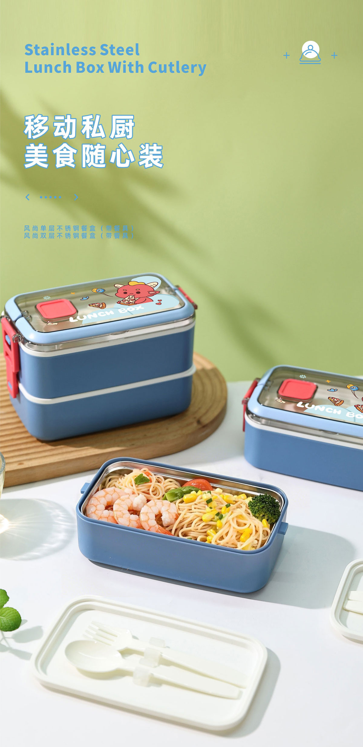 風尚單層/雙層不銹鋼餐盒(帶餐具)