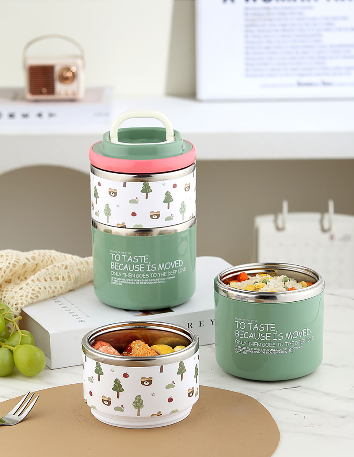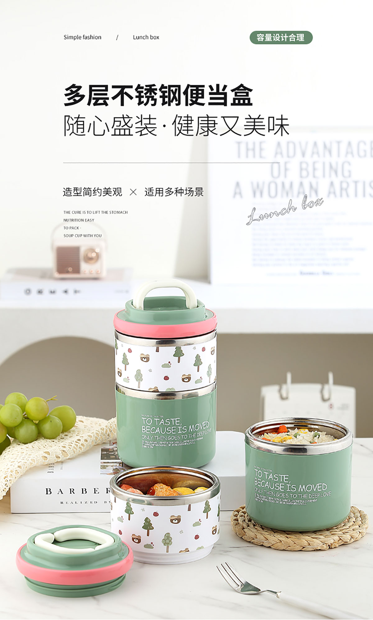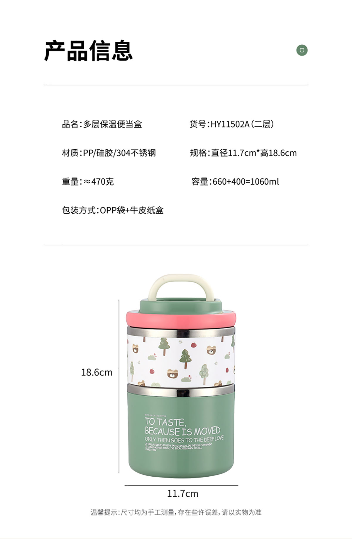 雙層保溫便當(dāng)盒(二層)660+400=1060ml