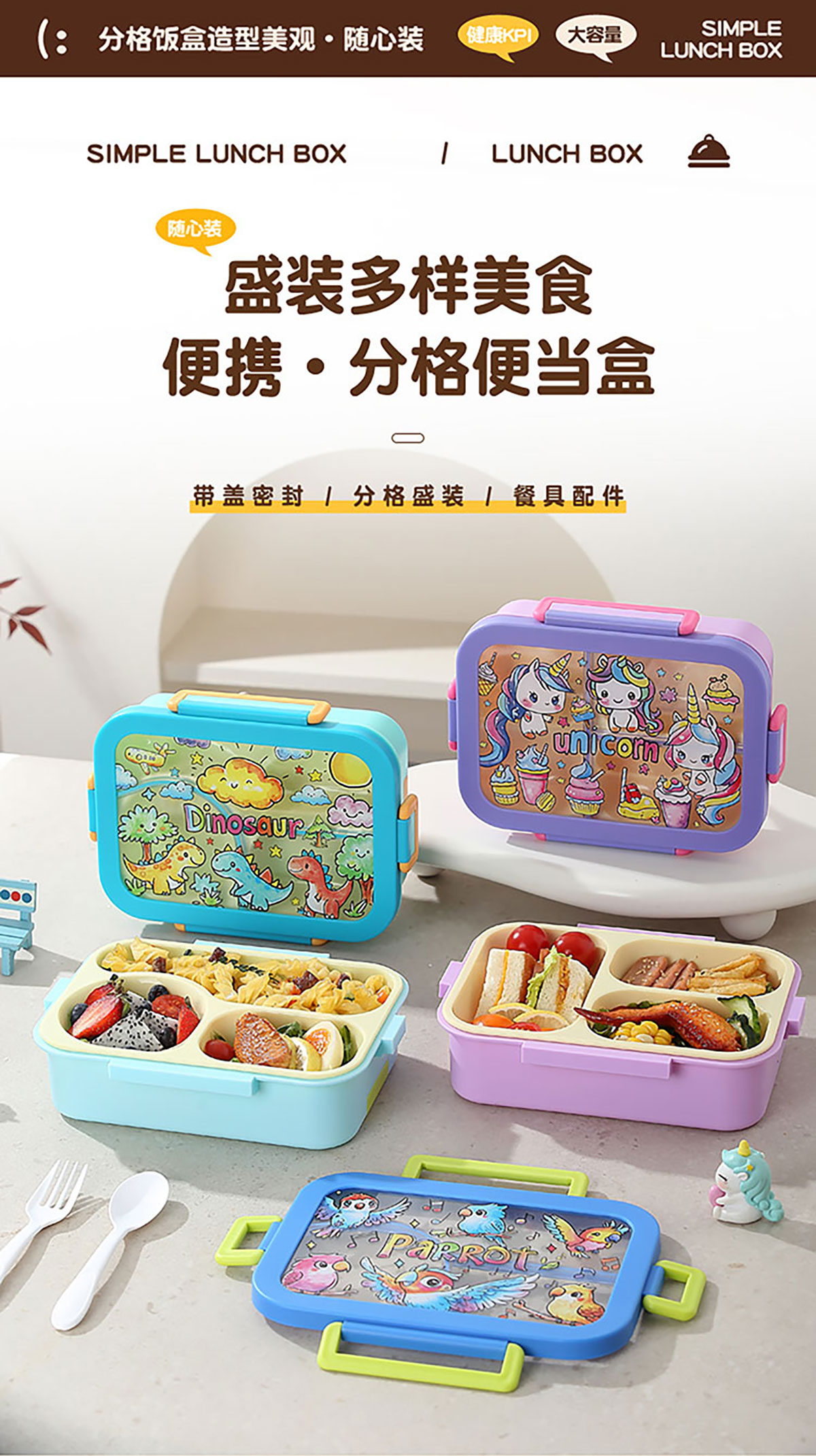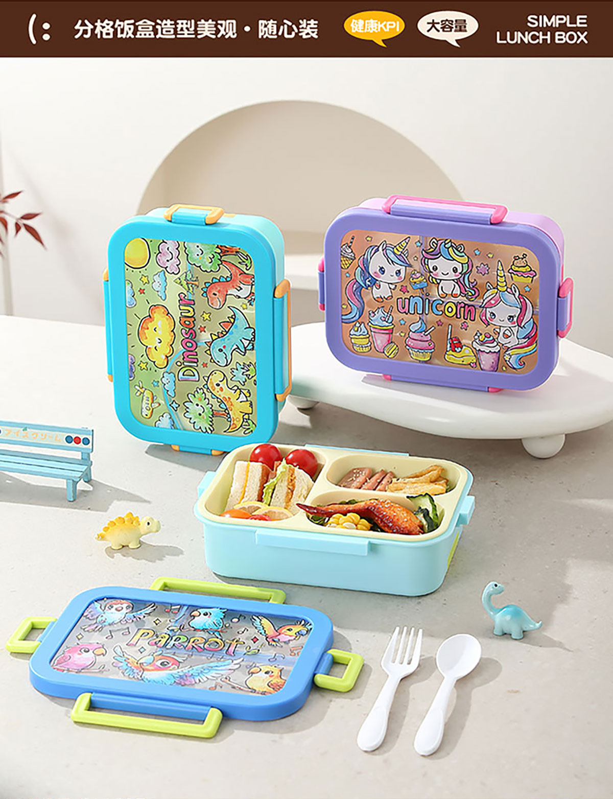 星樂卡通便當(dāng)盒 下單可選三格700ml/三格帶碗650ml